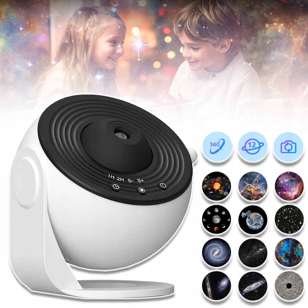 Этот звездный проектор для планетария оснащен 12 киноэкранами, на которых отображаются планеты и естественное освещение. Галактические светильники HD освещают стены и потолки звездами и туманностями, создавая захватывающий опыт, который перенесет вас в глубины галактики