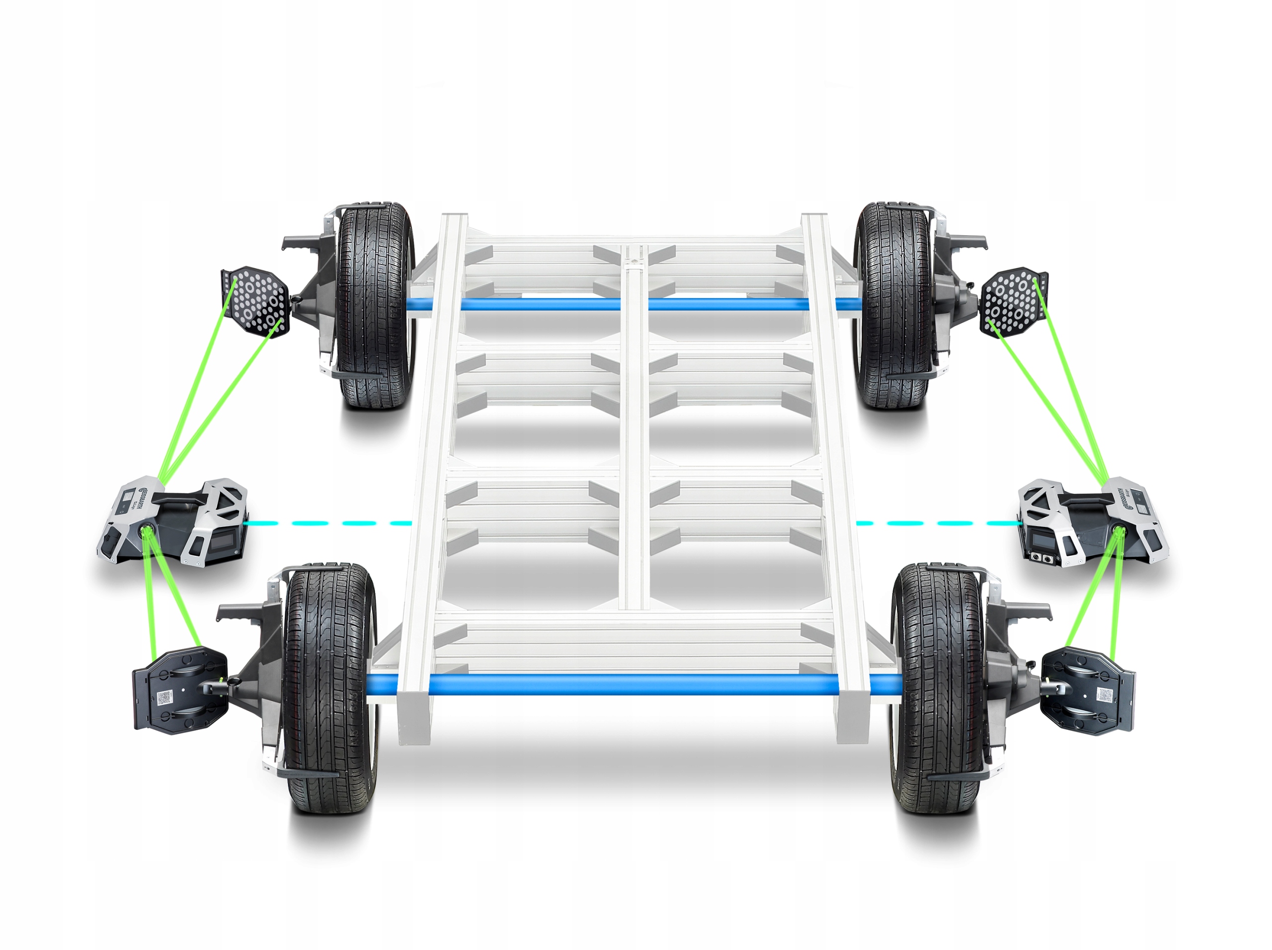 Сотрудничество с ADAS - после дооснащения устройством Q.DAS, калибровка радара и камеры наилучшим образом - т.е. определение геометрической оси движения с помощью геометрического устройства, регулировка положения бортов перед автомобилем с предварительным просмотром параметров в реальном времени с использованием геометрии! Единственный метод, одобренный производителями автомобилей!