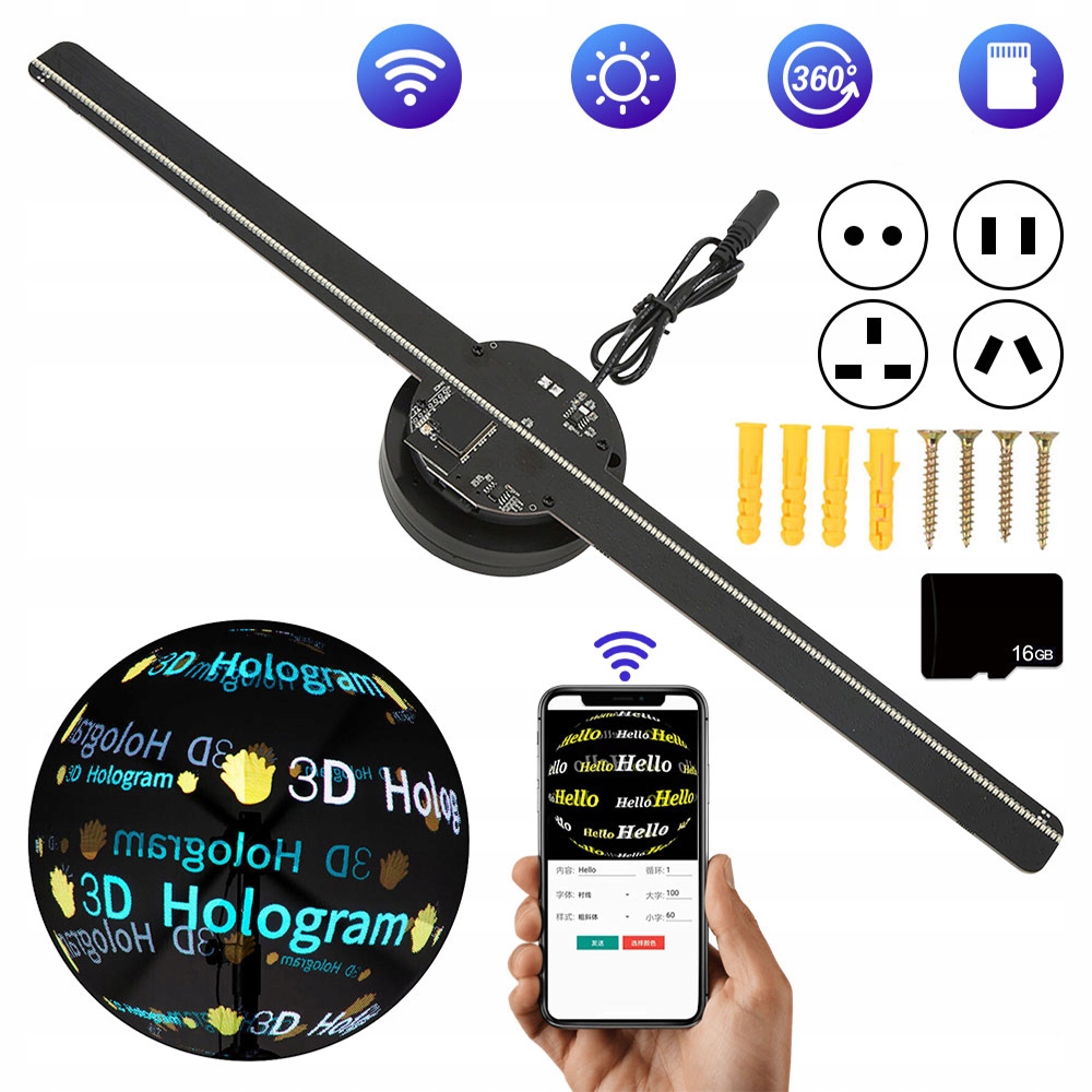 3D Hologram Projector Wi -Fi 224 Светодиодный голографический фан -реклама набор 420 мм