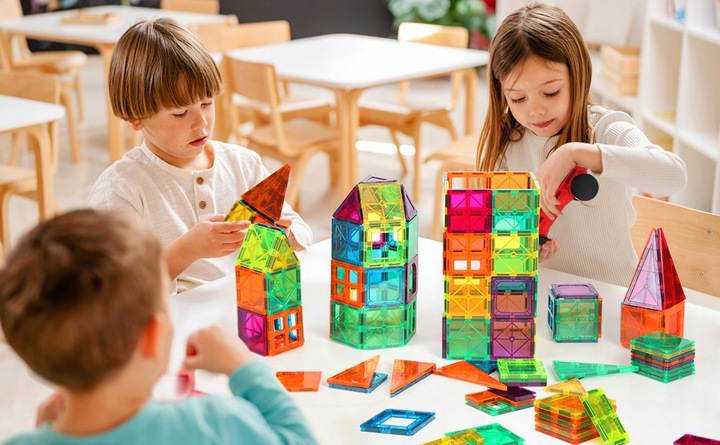 ✨ Магнитные блоки - универсальная игрушка, которую дети с раннего возраста любят. Даже самый маленький набор имеет большие возможности и множество структур, которые можно сложить. Набор - отличная идея, чтобы начать интересное приключение с построения. С их помощью ребенок изучает цвета и формы.