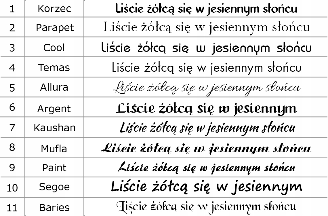 Мы предлагаем следующие шрифты (см. таблицу ниже):