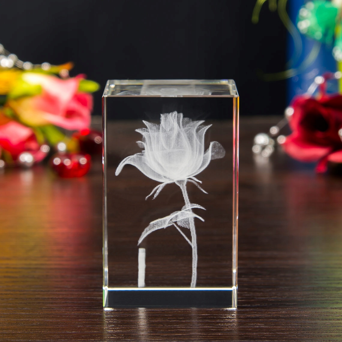3D-роза «Цветок любви» выгравирована на красивом 3D-кристалле с вашей преданностью!