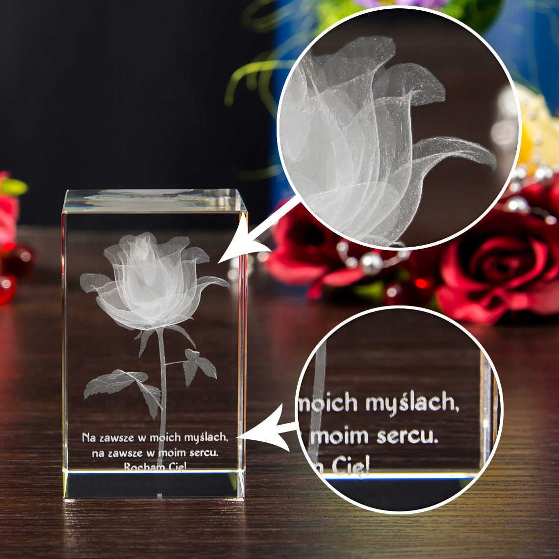 3D Кристалл # Роза 3D с вашим посвящением RKWM1