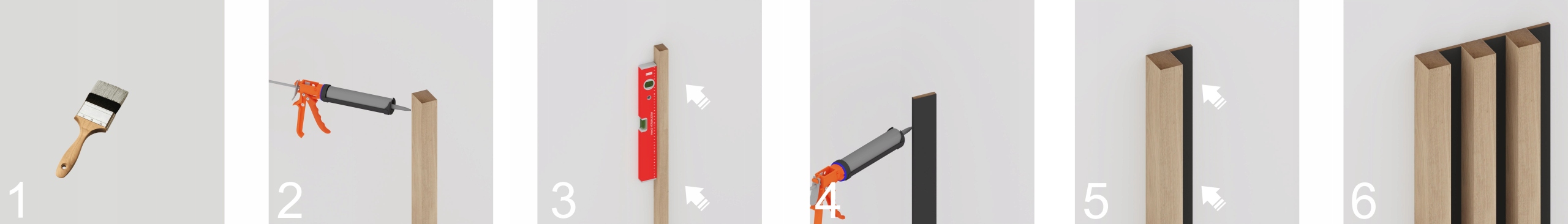 1. Ламели приклеиваются непосредственно к стене (без сверления)