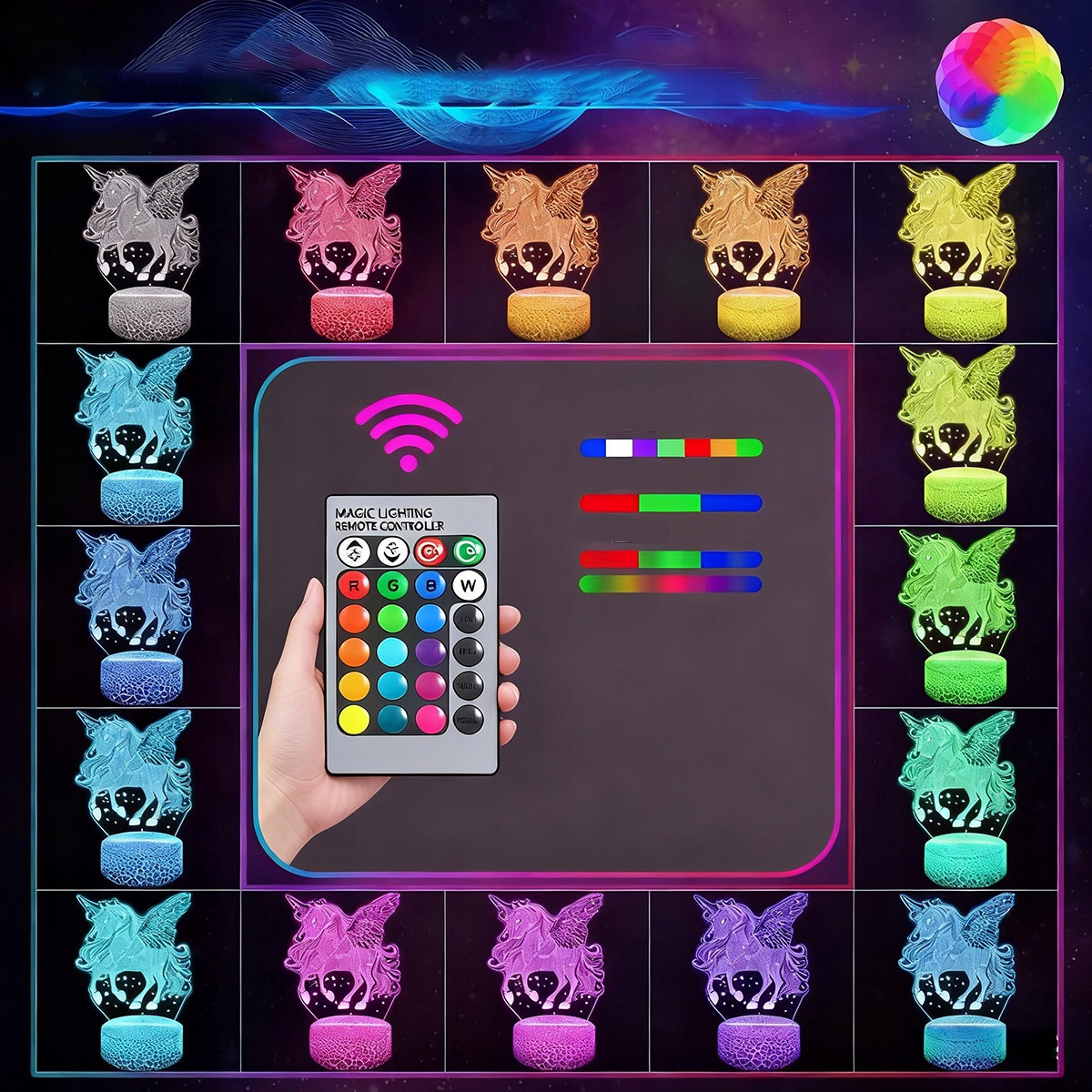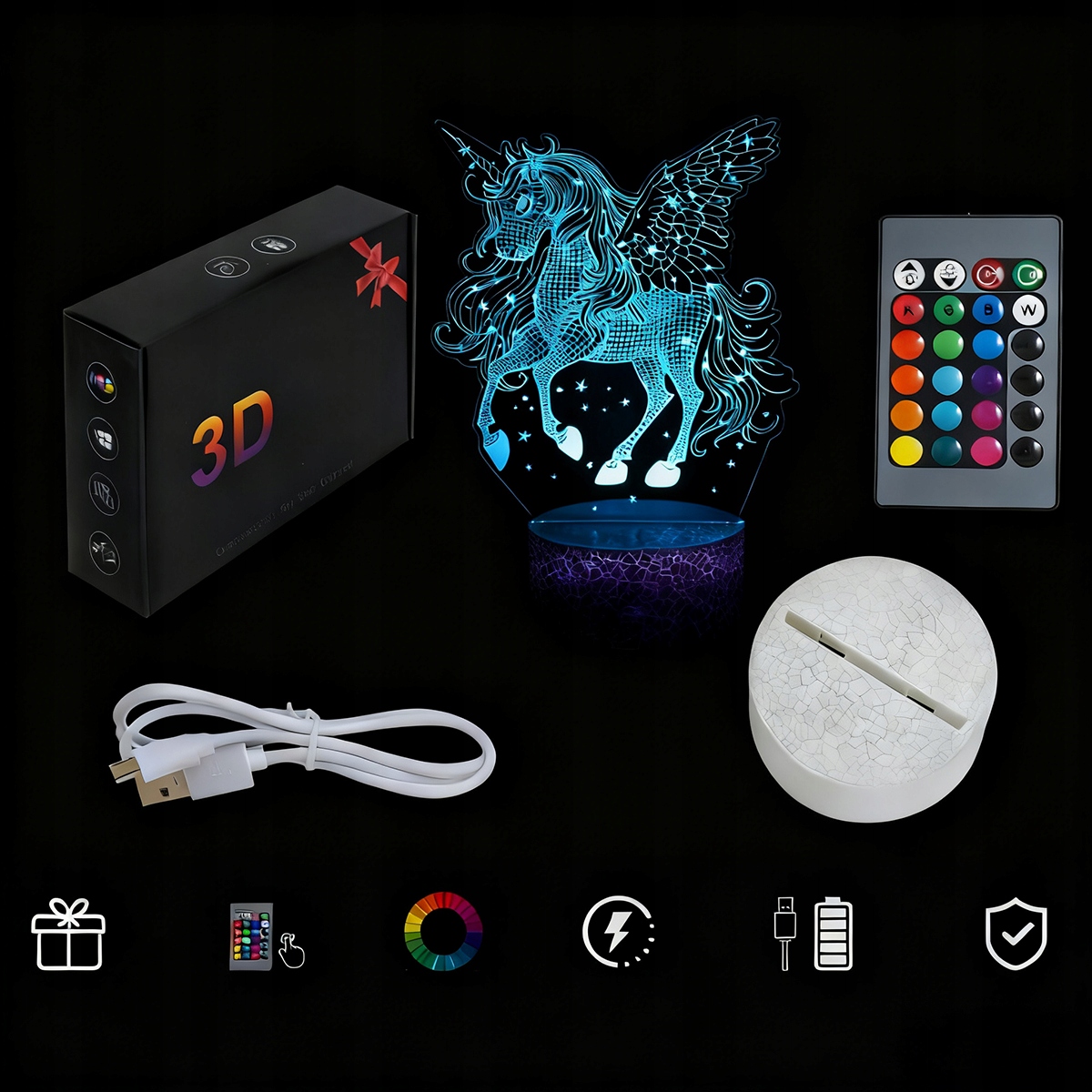 ⭐UNCORN PONY НОЧНАЯ ЛАМПА С 3D-ЭФФЕКТОМ СВЕТОДИОДНЫХ ЦВЕТОВ + ПУЛЬТ ДИСТАНЦИОННОГО УПРАВЛЕНИЯ⭐