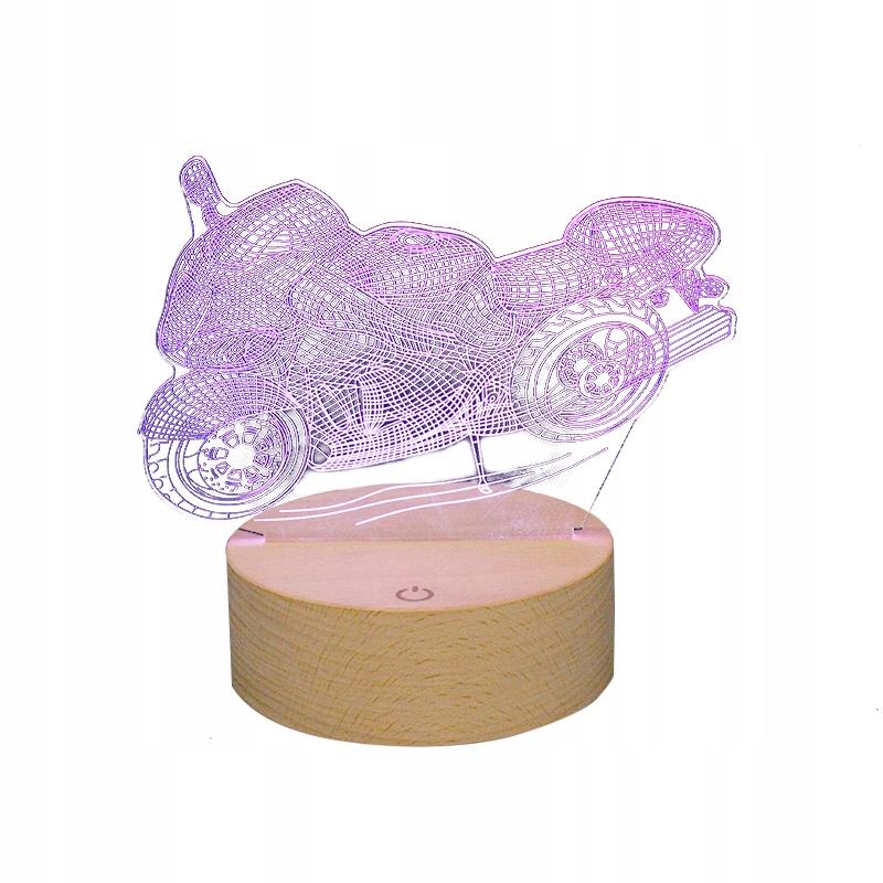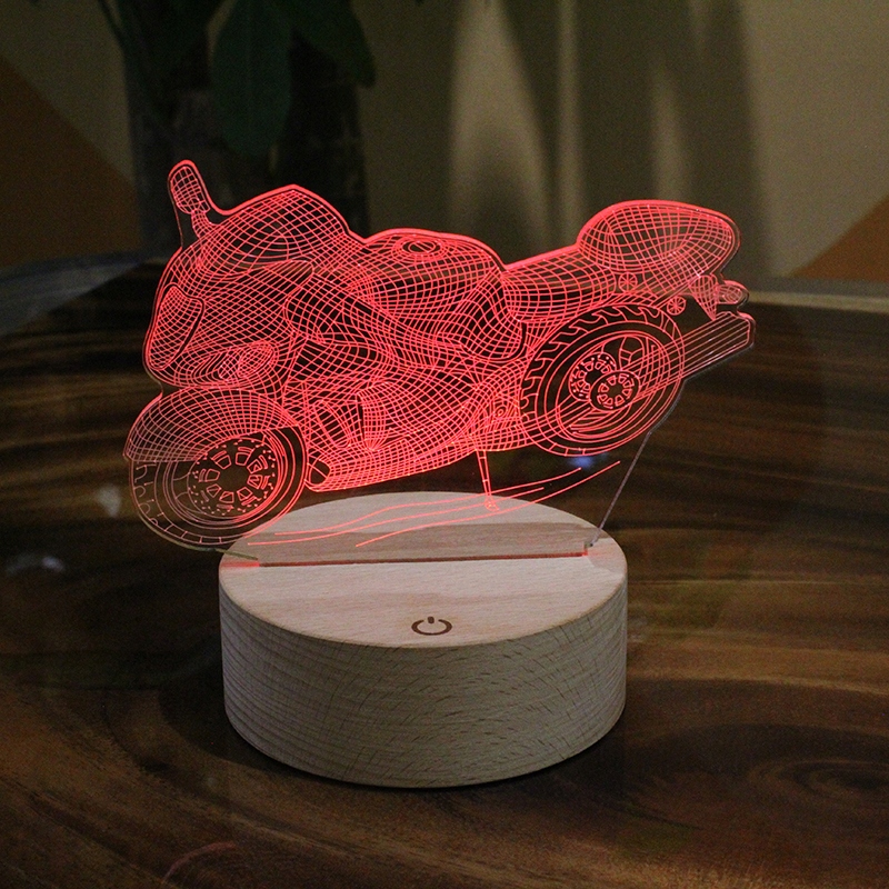 Профессиональный НОВЫЙ 3D светодиодный светильник в версии ПРЕМИУМ (деревянная подставка) с мотивом мотоцикла из серии LED Vehicles