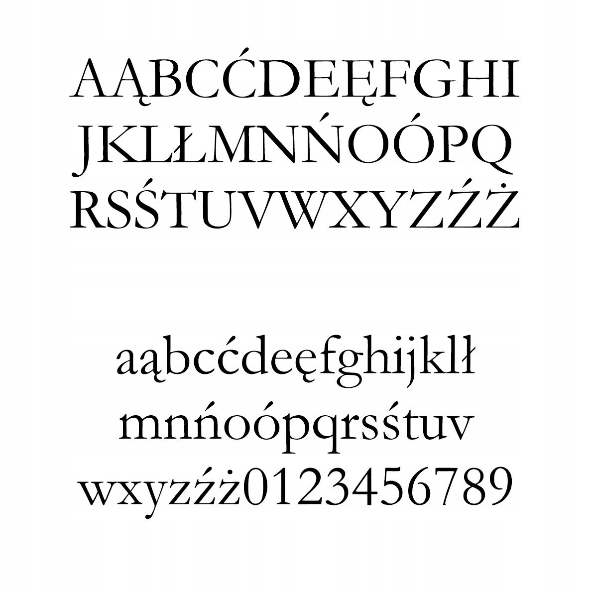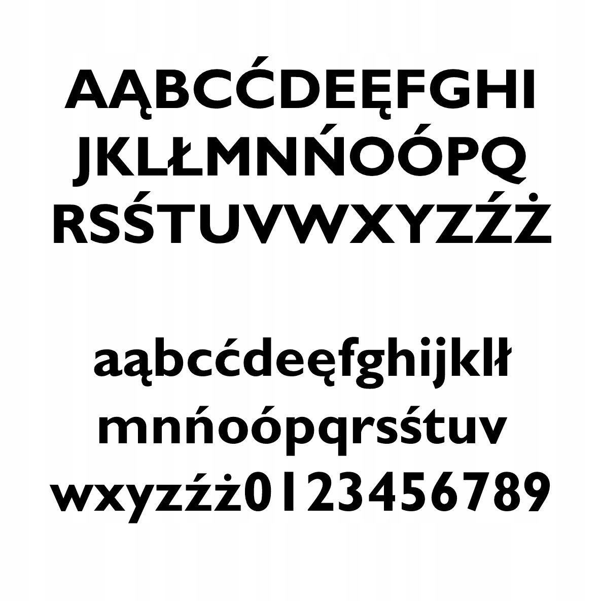 a - 63x76mm, ą - 66x107mm, B - 76x107mm, C - 68x76mm, ć - 68x105mm, D - 76x107mm, E - 73x76mm, ę - 73x107mm, f - 51x107mm, g - 77x104mm, h 15x106mm, J - 40x135mm, K - 71x106mm, L - 10x106mm, ł - 39x106mm, m - 124x76mm, n - 69x76mm, ń - 69x104mm, o - 76x76mm, ó - 76x105mm, P - 76x104mm, Q R - 38x76mm, p 61x104mm