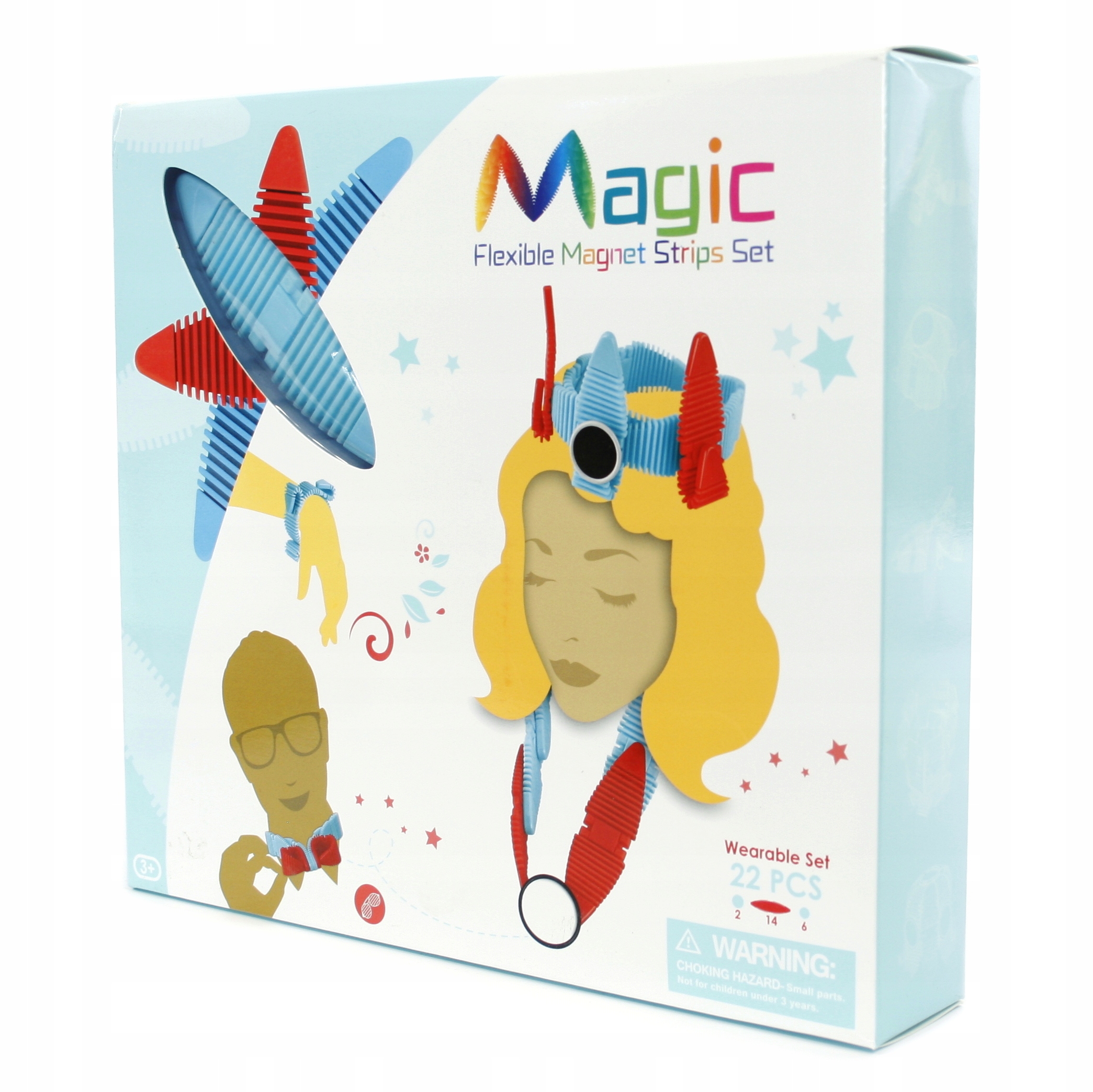 Набор состоит из магнитных полос и соединительных элементов. Уникальная форма и материал позволяют детям легко сгибать, комбинировать или устраивать магнитные полосы друг с другом и создавать различные формы.