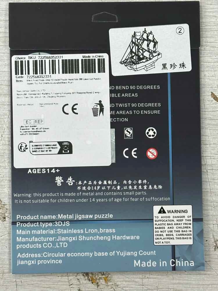 Просматривая «3D Metal Puzzle zestaw modeli do składania - Czarna perła +14», вы можете быть уверены, что данный товар из каталога «[rubrica_name]» будет доставлен из Польши и проверен на целостность. В цене товара, указанной на сайте, учтена доставка из Польши. Внимание!!! Товары для Евросоюза, согласно законодательству стран Евросоюза, могут отличаться упаковкой или наполнением.