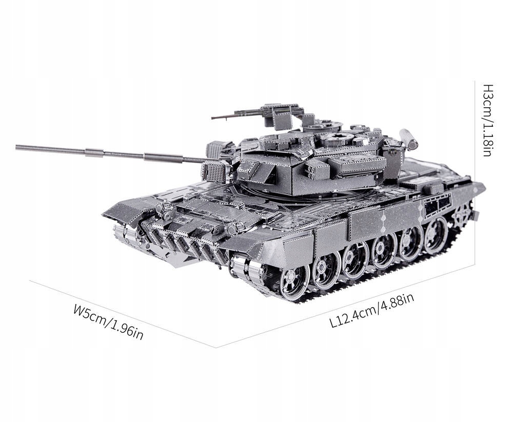 Т-90А. Российский основной боевой танк, оснащенный множеством современных систем, в том числе противовзрывной защитой, тепловизионными прицелами и средствами постановки помех. Танк Т-90А оснащен усовершенствованной башней танка Т-72Бат, использует систему управления огнем ЛА45Т и 125-мм гладкоствольную пушку 2А46М-1. Модель Piececool из листового металла содержит 150 деталей из нержавеющей стали в 2 листах, которые составляют очень подробную копию Т-90а.