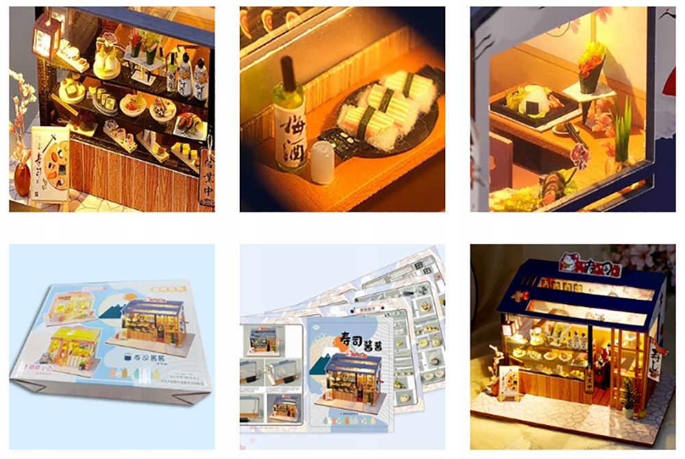 3D ПАЗЛ ДЕРЕВ'ЯНА МОДЕЛЬ ЗІ СВІТЛОДІОДОМ - SUSHI SHOP