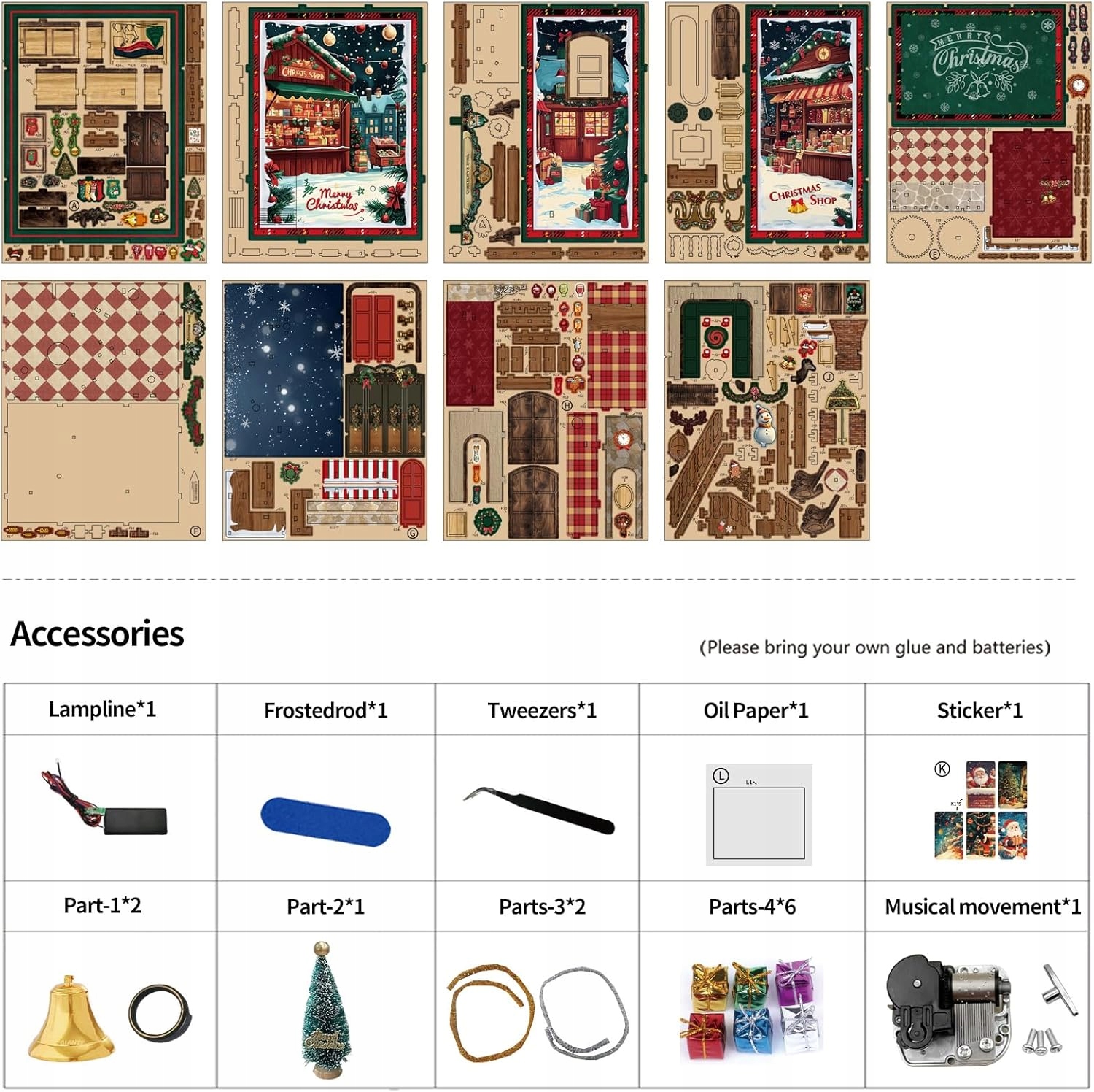 ✨ Этот набор пазлов из 264 деталей включает в себя светодиоды, наклейки, механизм музыкальной шкатулки и аксессуары.