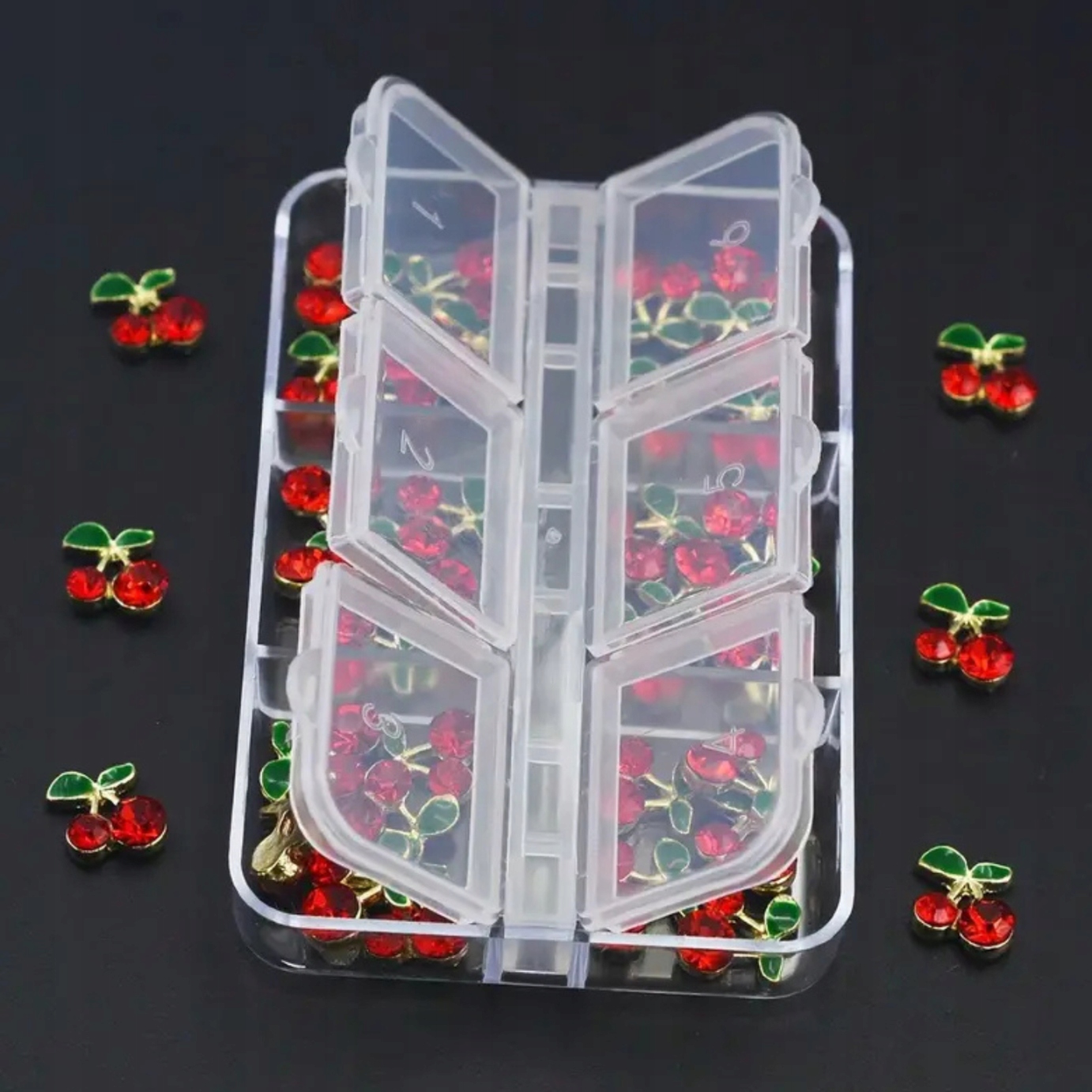 3D -украшения для украшения ногтей красной вишни в кассете 30 шт.