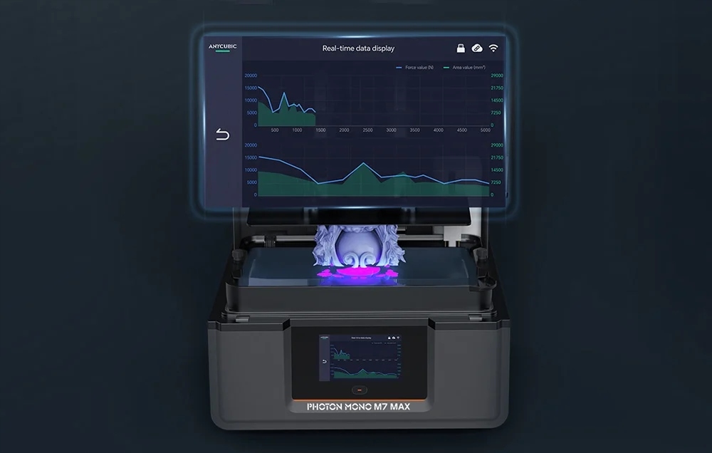 Photon Mono M7 Max оснащен интуитивной панелью управления с 4,3-дюймовым сенсорным TFT-экраном, позволяющим легко настраивать параметры печати. Навигация по меню проста и понятна, что позволяет с легкостью работать с ним как новичкам, так и опытным пользователям. Сотрудничество со специальным программным обеспечением Anycubic позволяет полностью контролировать процесс печати и адаптировать его к индивидуальным потребностям.
