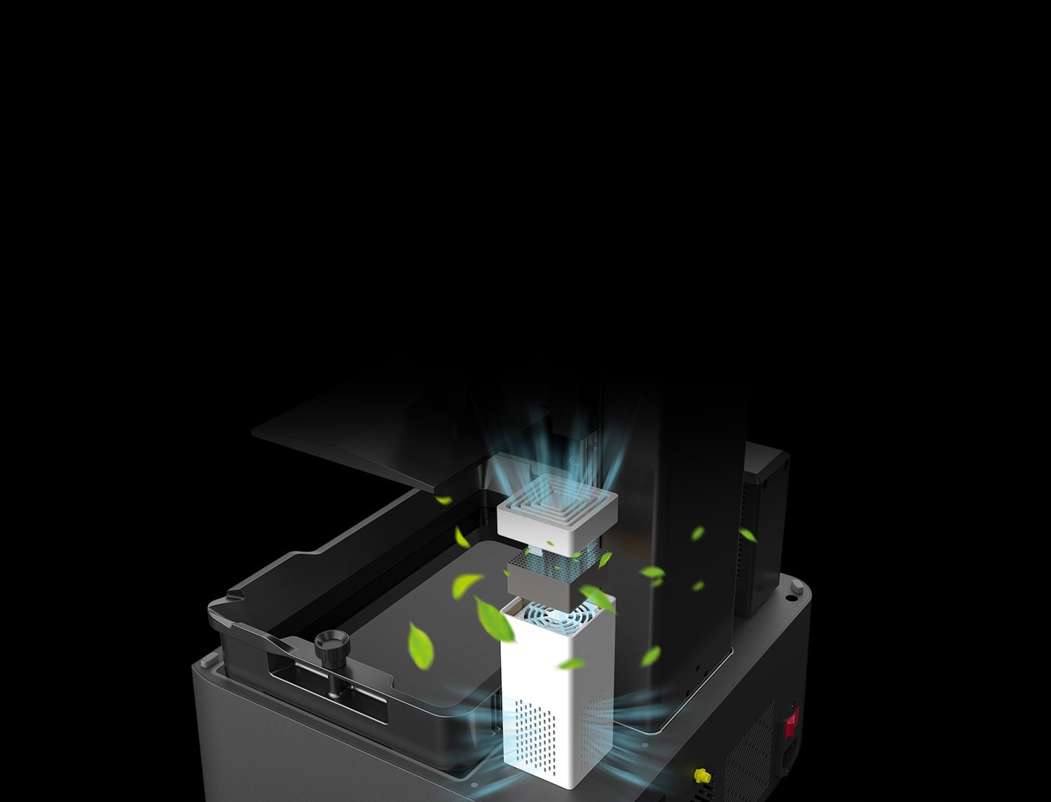 Встроенный фильтр с активированным углем и эффективный двигатель вентиляции; Эффективность очистки от ЛОС достигает 99% за одну операцию; Эффективно поглощает и фильтрует запахи смолы рядом с источником печати, обеспечивая чистоту и спокойствие пользователя.