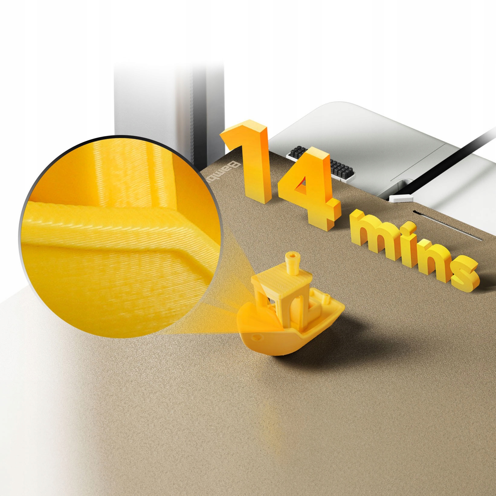 Цельнометаллические направляющие, жесткая конструкция, датчик давления сопла, акселерометры, мощный микроконтроллер и, прежде всего, усовершенствованная система управления движением, которая использует эти функции для печати тестового корабля за 14 минут с сохранением качества и с соблюдением всех правил скорости. , сразу же из коробки, без необходимости использования специализированных нитей.