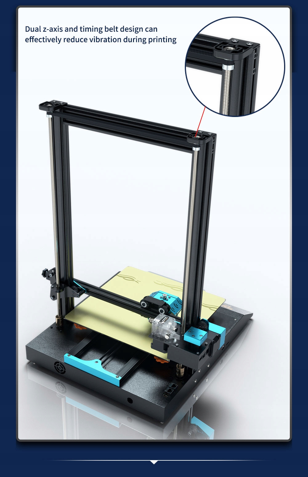 ✅ Двойная ось Z с ременной синхронизацией гарантирует еще большую точность движения оси Z во время печати.