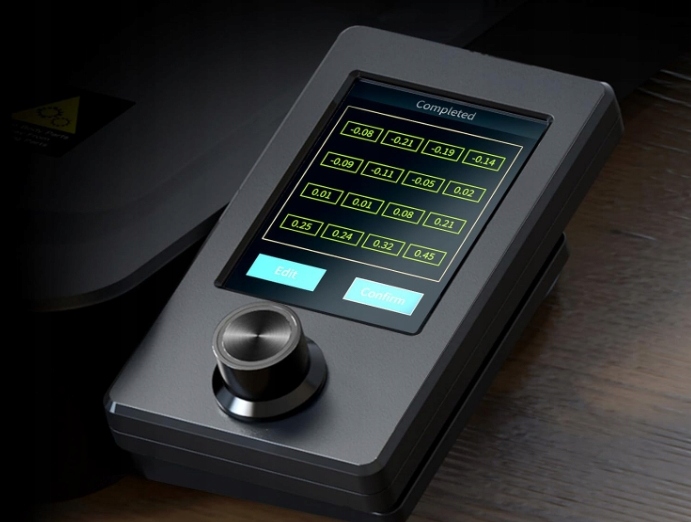 Пользовательский интерфейс использует анимированную графику для отображения процесса выравнивания и других параметров.