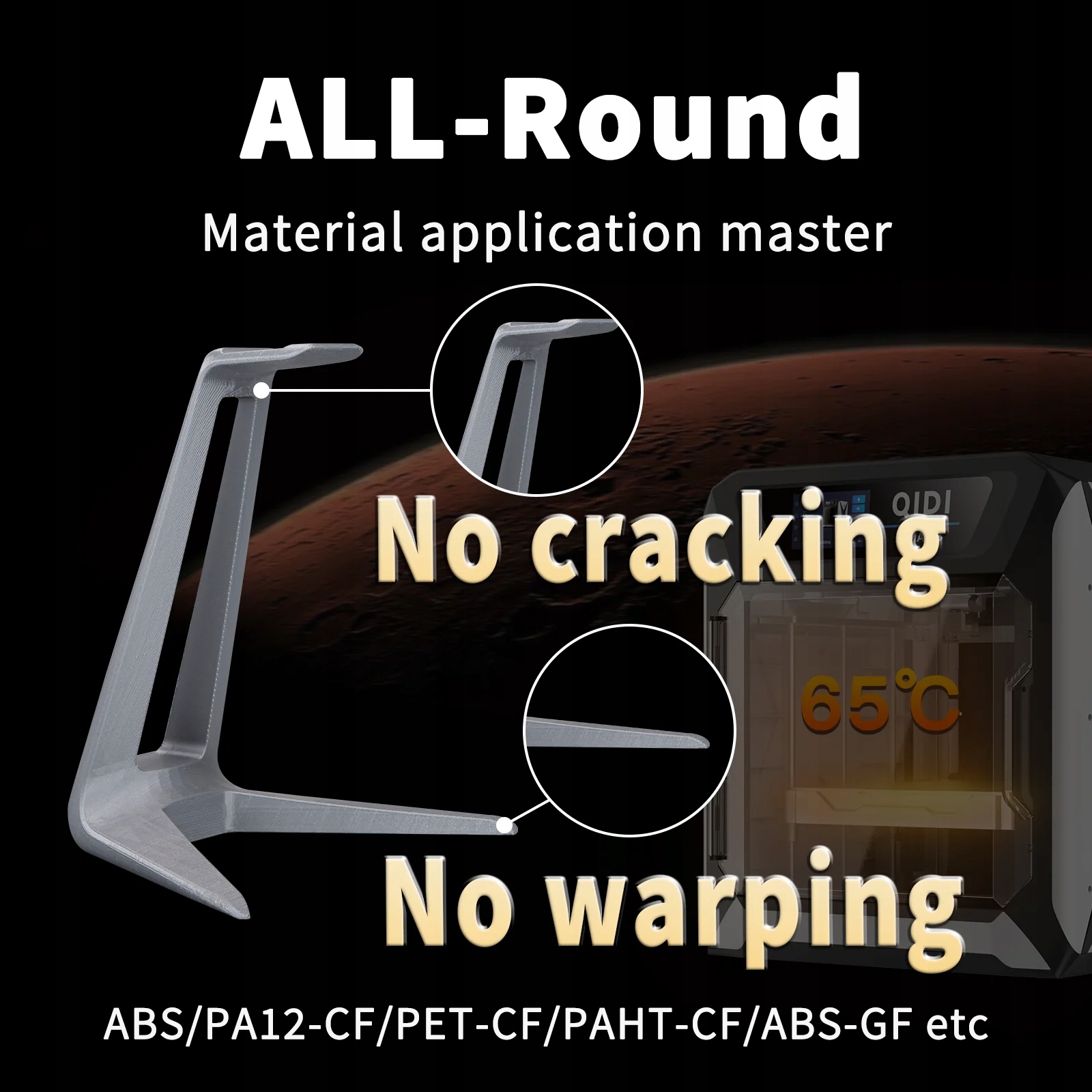 Чем выше температура в обогреваемой камере, тем больший диапазон материалов можно напечатать. Нагретая камера обеспечивает равномерное изготовление деталей без внутренних напряжений.