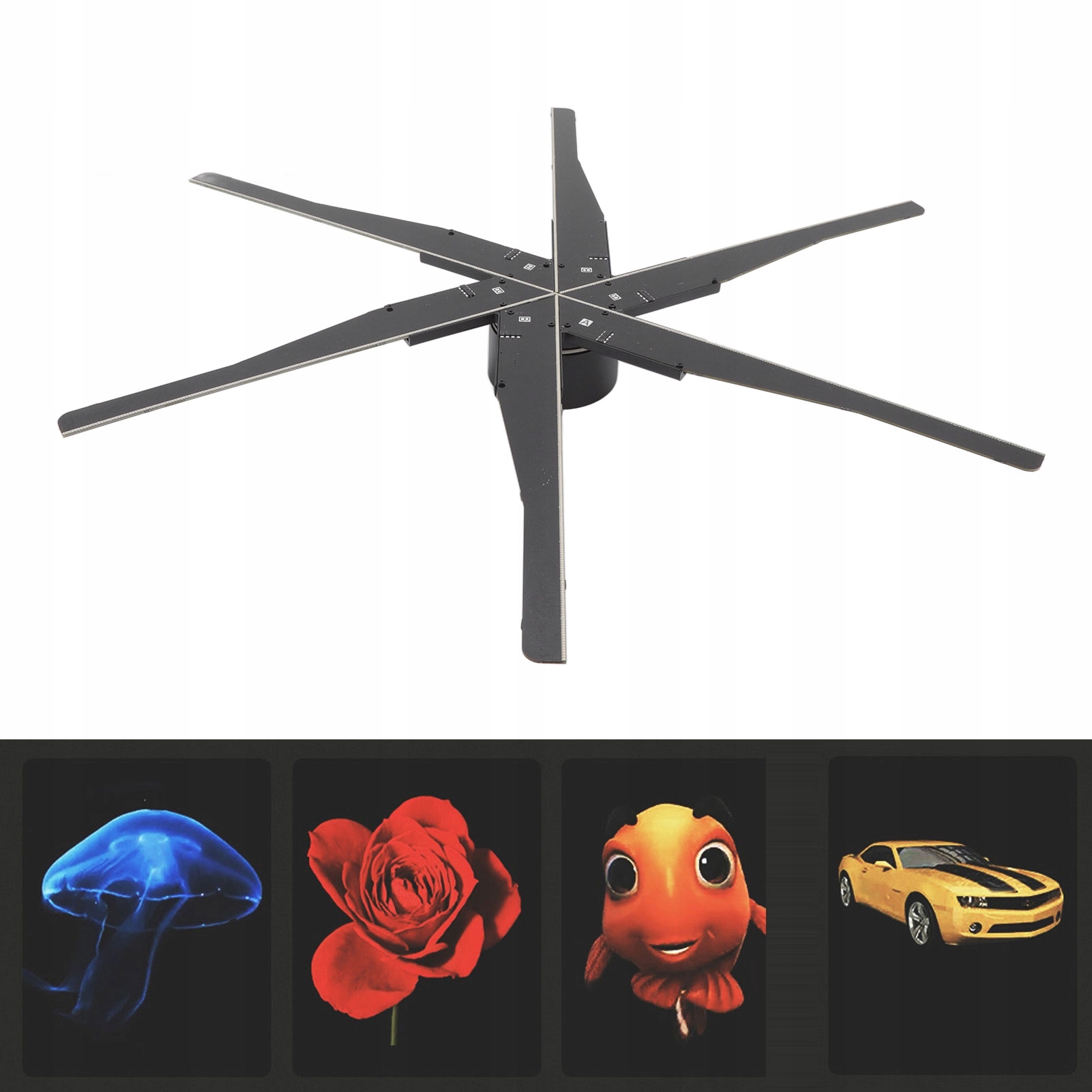 1. Четкое изображение: вентилятор с 3D-голограммой легко заменяет рекламный контент и поддерживает отображение обычных изображений, анимации и изображений.