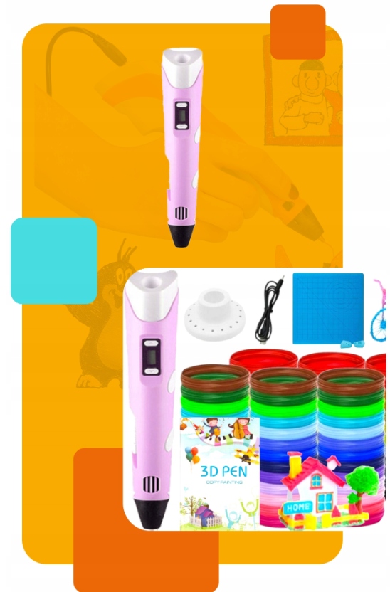 3D РУЧКА 3D ПРИНТЕР ДЛЯ ДЕТЕЙ РОЗОВЫЙ + стержень 210м + НАБОР ШАБЛОНОВ XL