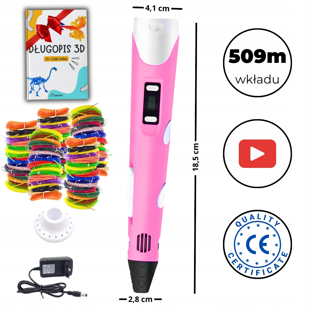 НАБОР 3D-РУЧКИ ДЛЯ ДЕТЕЙ MAGIC PEN ПРИНТЕР + 509 М КАРТРИДЖЕЙ + ШАБЛОН