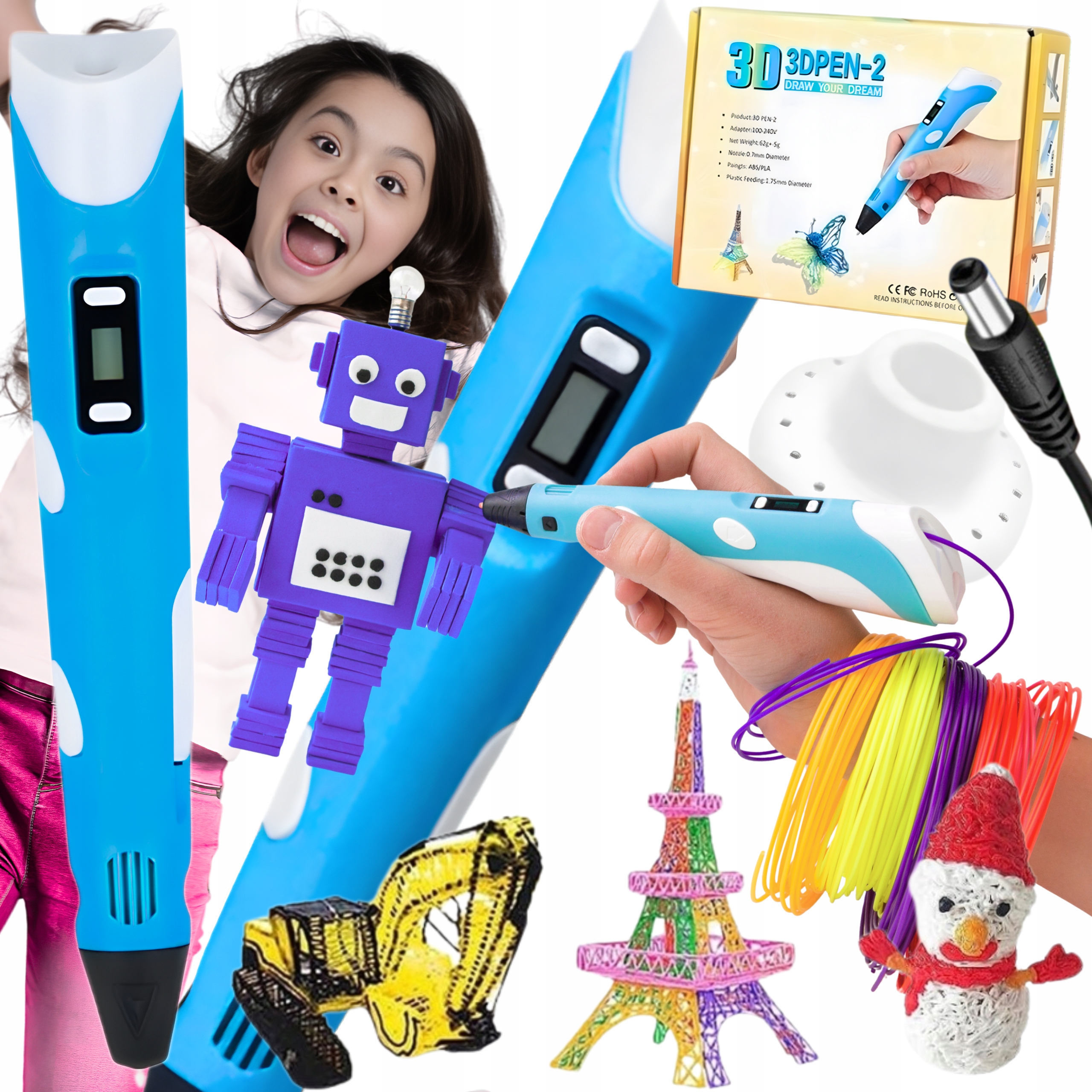 3D РУЧКА ДЛЯ ДІТЕЙ 3D PEN ПРИНТЕР НАБІР І КАРТРИДЖІ PLA 9 МЕТРІВ
