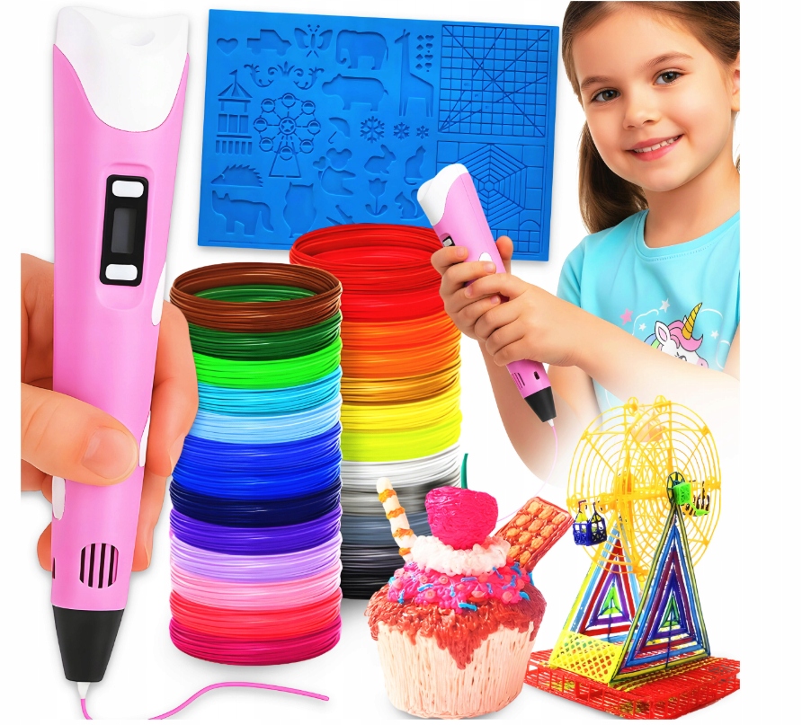 3D РУЧКА ДЛЯ ДЕТЕЙ ТВОРЧЕСКИЙ 3D НАБОР + СТЕРЖНИ 200 МЕТРОВ + ШАБЛОНЫ
