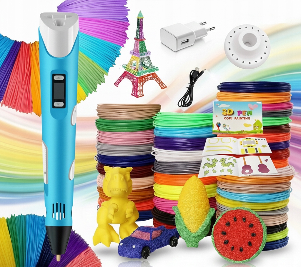 НАБОР РУЧКИ ДЛЯ 3D-ПРИНТЕРА XXL + КАРТРИДЖИ 110 МЕТРОВ + ШАБЛОНЫ + БЛОК ПИТАНИЯ