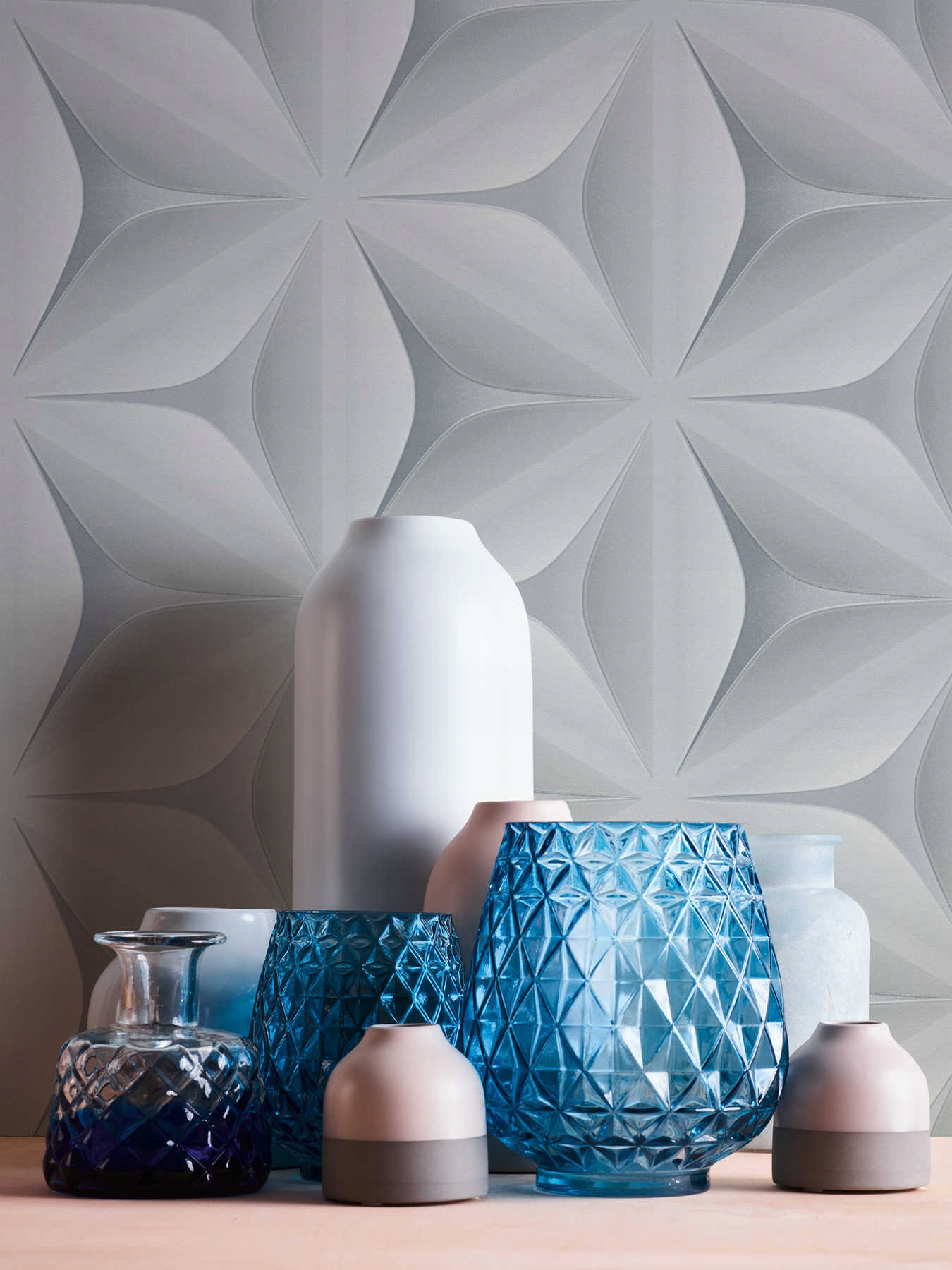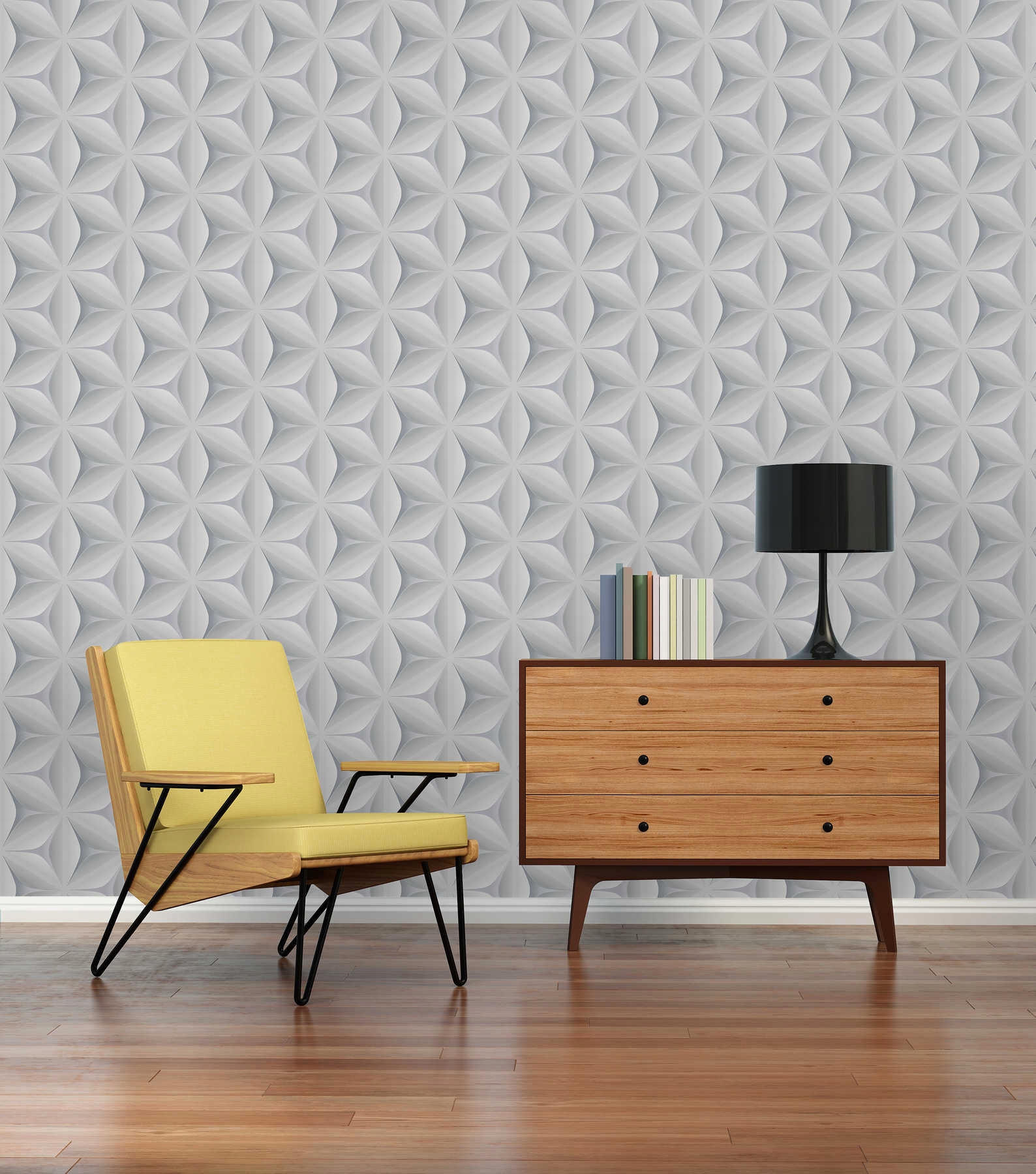 -Описание рисунка: привлекательные обои в стиле модерн из коллекции Move Your Wall немецкого производителя AS CREATION®, известного во всей Европе. Узор состоит из искусно соединенных треугольников и параллелограммов с закругленными вершинами, выполненных в стильных светло-стальных серо-белых тонах. Он прекрасно дополнит современный интерьер и будет аккуратно контрастировать с декором помещений, оформленных в классическом стиле. Флизелиновая основа делает эти обои исключительно простыми в наклеивании, поскольку они не требуют нанесения клея — достаточно наклеить их на саму стену.
