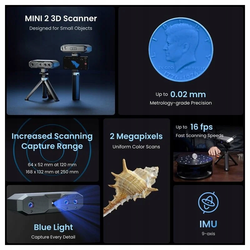 3D-сканер Revopoint MINI 2 Advance Edition, 0,02 мм, 10 кадров в секунду, 9-осевой IMU