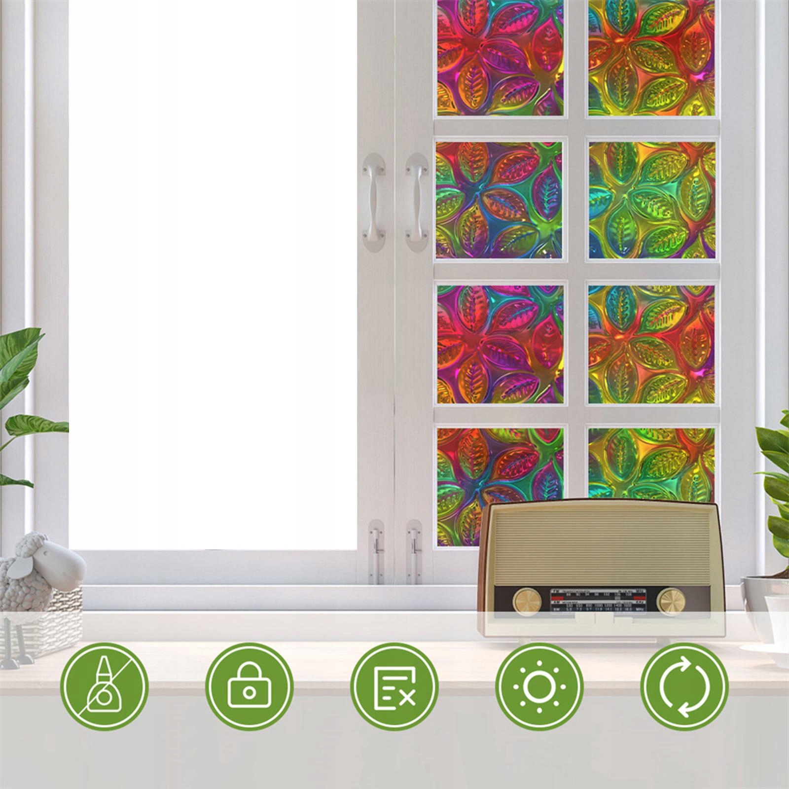 3D-эффект радуги: рисунок наклейки на стекло дает эффект, а эффект маскировки лучше, чем у обычных наклеек из матового стекла.