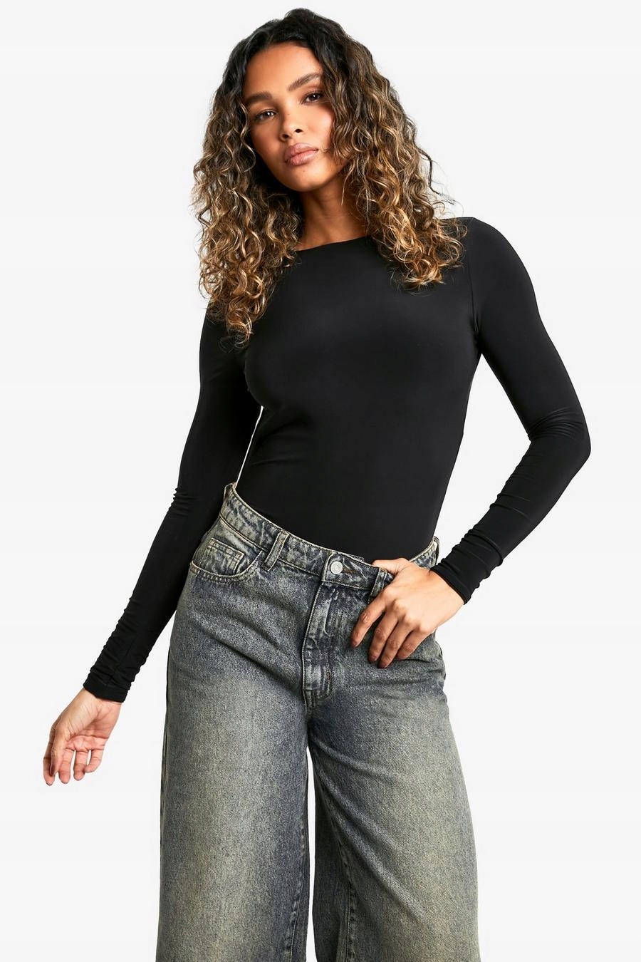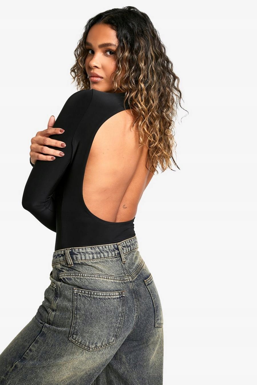 3D0A32 BOOHOO ЧЕРНОЕ БОДИ БЕЗ СПИНКИ SLINKY A02 L
