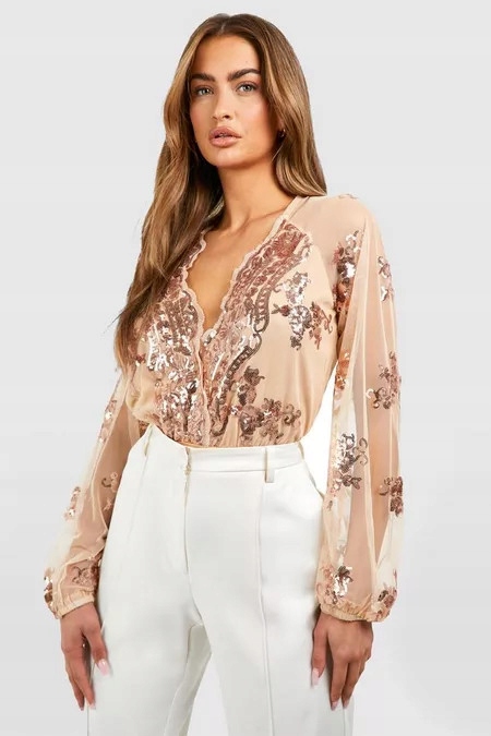 3E0A09 Boohoo Beige Body с блестками A02 S