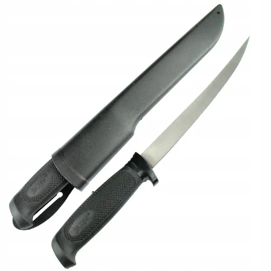Нож отлично подходит для филе и разрезания рыбы. Ручка изготовлена из очень твердого и долговечного пластика, она идеально расположена в руке. Нож расположен в крышке из высококачественного пластика. Обложка оснащена клипсом, благодаря которой она может быть прикреплена к брюкам, сумке или ремню