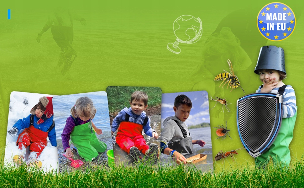 Благодаря специальному материалу KAMIDEX, из которого изготовлены наши вейдерсы, они обеспечивают отличную защиту детей от опасных насекомых, таких как осы, клещи, комары и муравьи, поэтому вам не о чем беспокоиться. что вашего ребенка укусят во время игры у воды, в лесу или на лугу