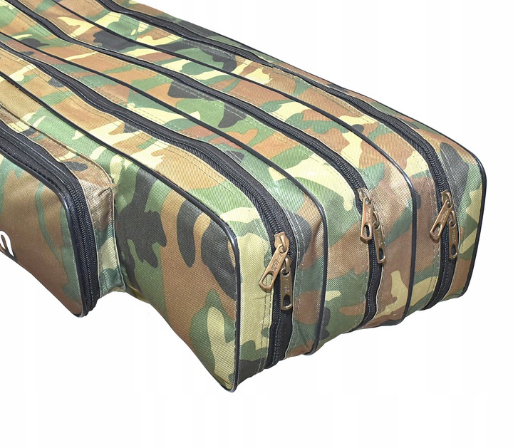 Жесткий трехотделительный чехол. Кроме того, гибкая и слегка жестковатая конструкция с карбоновыми лентами и прочными молниями обеспечивает 100% защиту удилищ. Очень высокое качество изготовления. Материал 100% водонепроницаемый. Два боковых кармана для аксессуаров. Сумка имеет лямки для переноски удочек на спине и обычные, типичные уши.