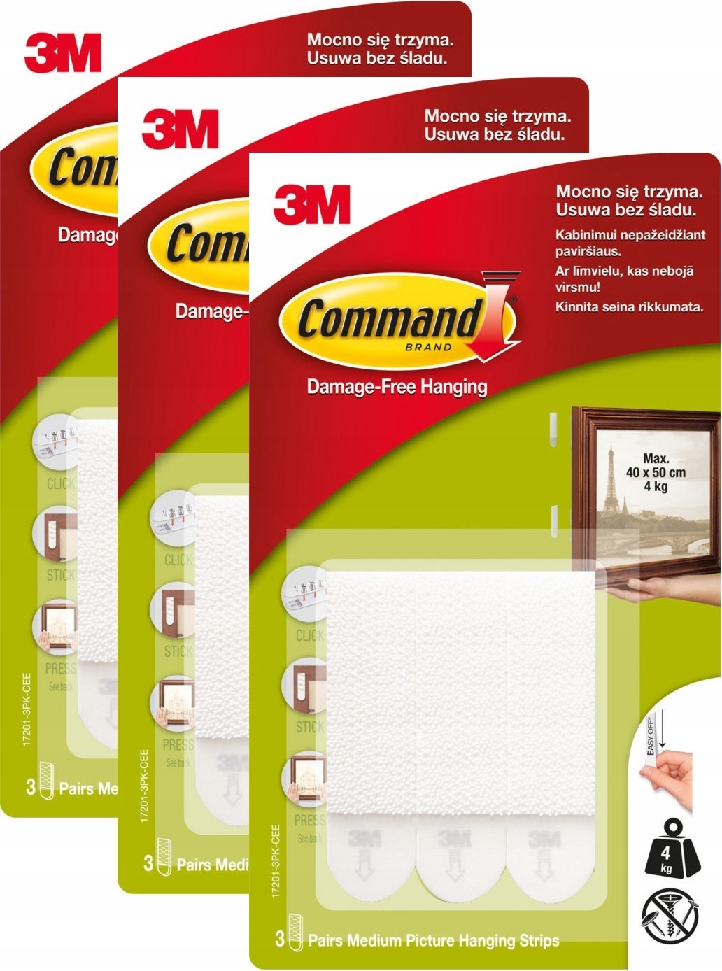 3M Командная липучка для подвесных рамков 3 наборов 4 кг _ 17201 3pk-cee