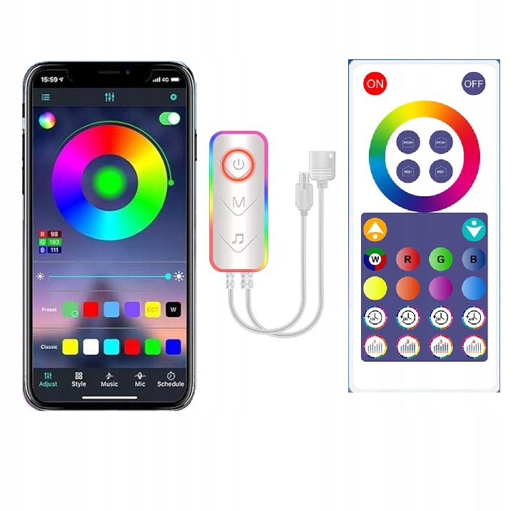 ⭐Чувствительный микрофон, встроенный в контроллер, позволяет менять цвет света на ритм звуков, исходящих из окружающей среды (например, музыки)