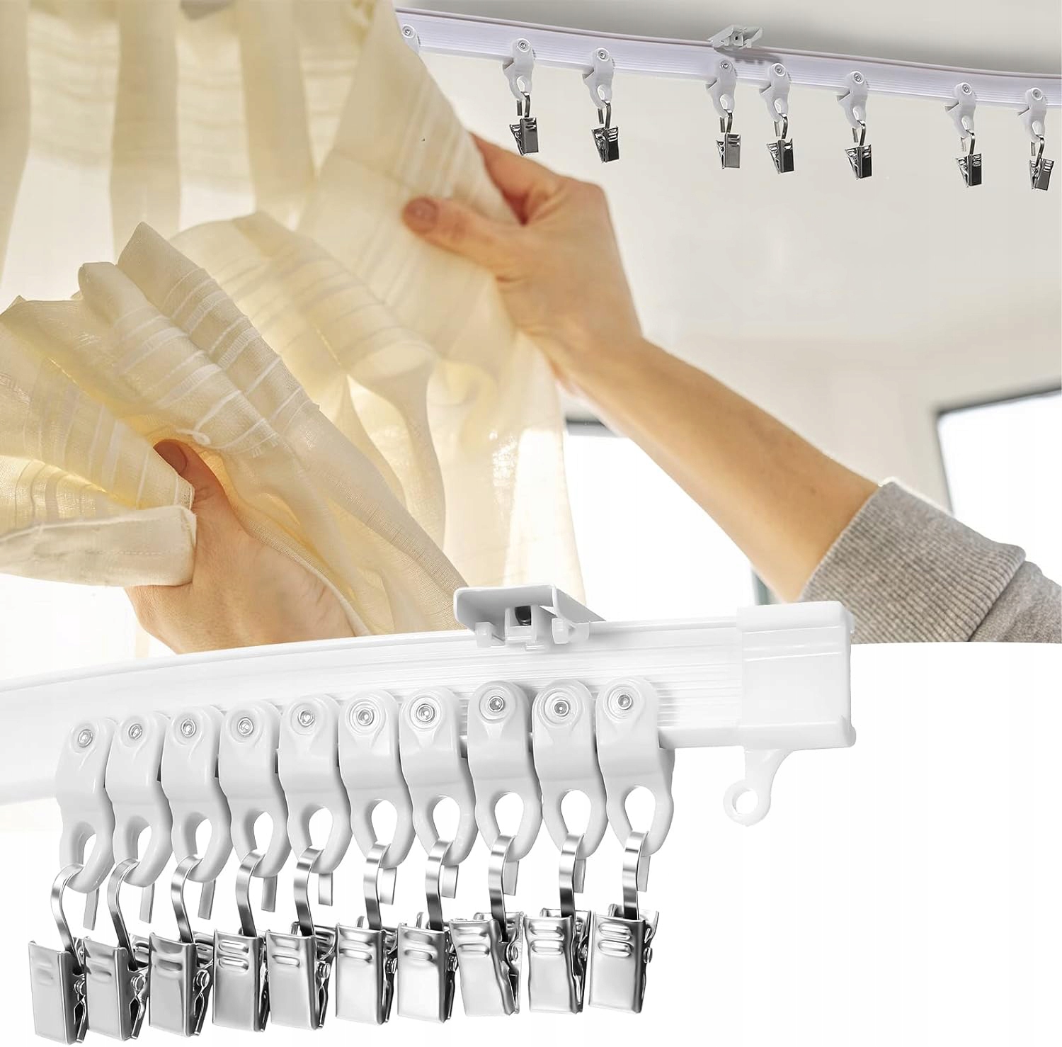 ✔️✔️ МНОЖЕСТВО ИСПОЛЬЗОВАНИЯ - Потолочный карниз с зажимами отлично смотрится в любой обстановке, например как офис/ванная комната/гостиная и т. д. Изогнутый карниз также идеально подходит для разделения комнаты, обработки эркеров, душевых кабин, кемперов, прицепов, кемперов или любых ограниченных пространств, где вам необходимо максимально увеличить пространство, и обеспечивает мгновенную конфиденциальность.