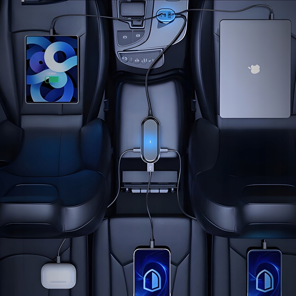 Получите больше мощности на маршруте! С помощью порта USB-C PD 65 Вт вы можете легко заряжать свой ноутбук, и в то же время ваши пассажиры могут использовать порты USB-C 20 Вт и USB-A QC 18 Вт. Это решение для водителей, которые ценят эффективность и надежность. Зарядка занимает короткое время – ваши устройства всегда готовы к работе, даже во время дальних поездок.