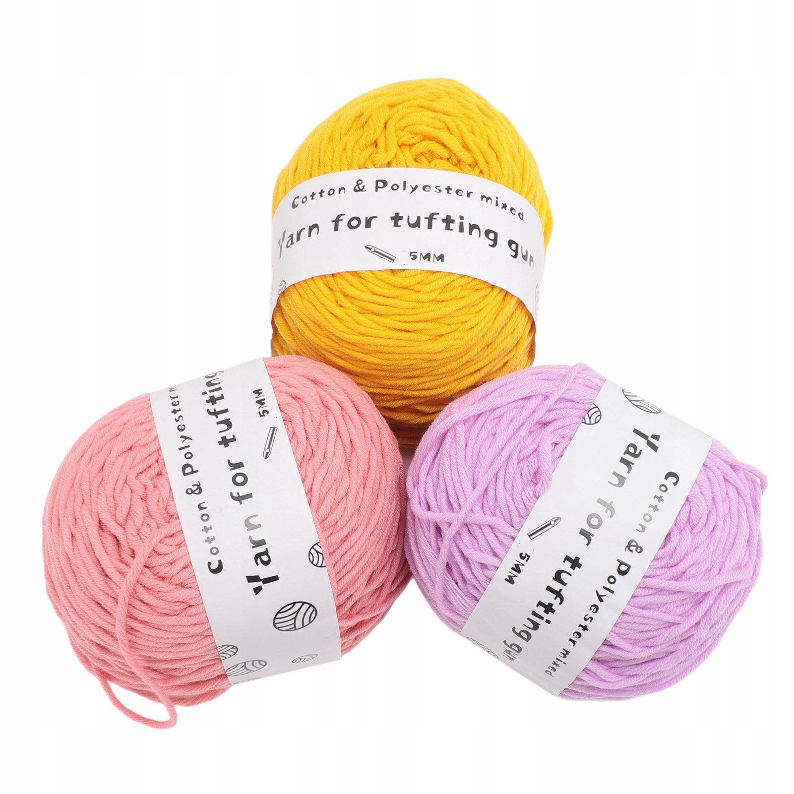 3шт ТУФТИНГОВАЯ ПРЯЖА МЯГКИЙ ХЛОПОК 8 НИТЕЙ СВЕТЛЫХ ЦВЕТОВ, СВЯЗАННАЯ КРЮЧКОМ 5Л