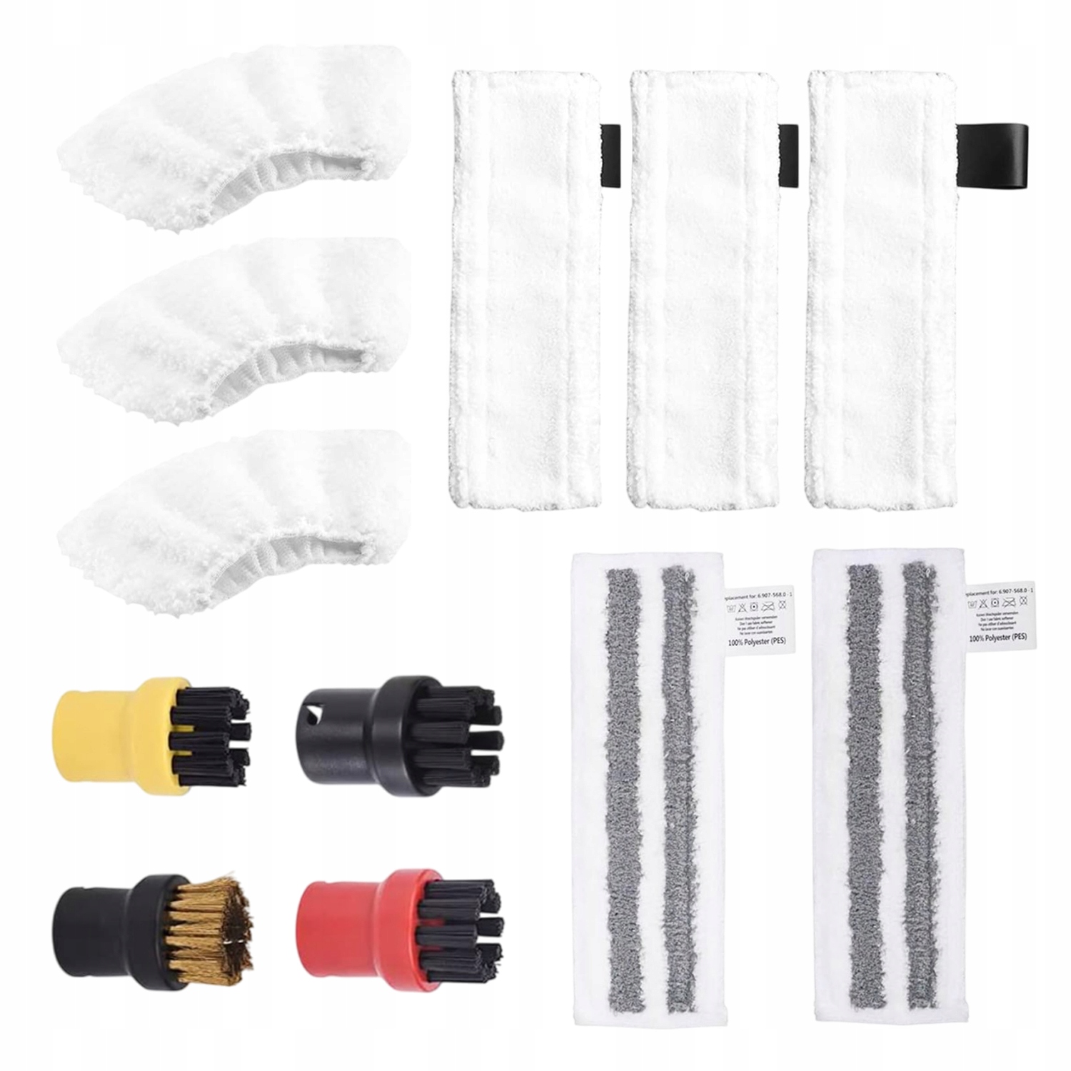 💧 - В комплект входят 3 салфетки из микрофибры, 2 шлифовальные салфетки, 3 подушечки из микрофибры и 4 круглые чистящие щетки для различных нужд.