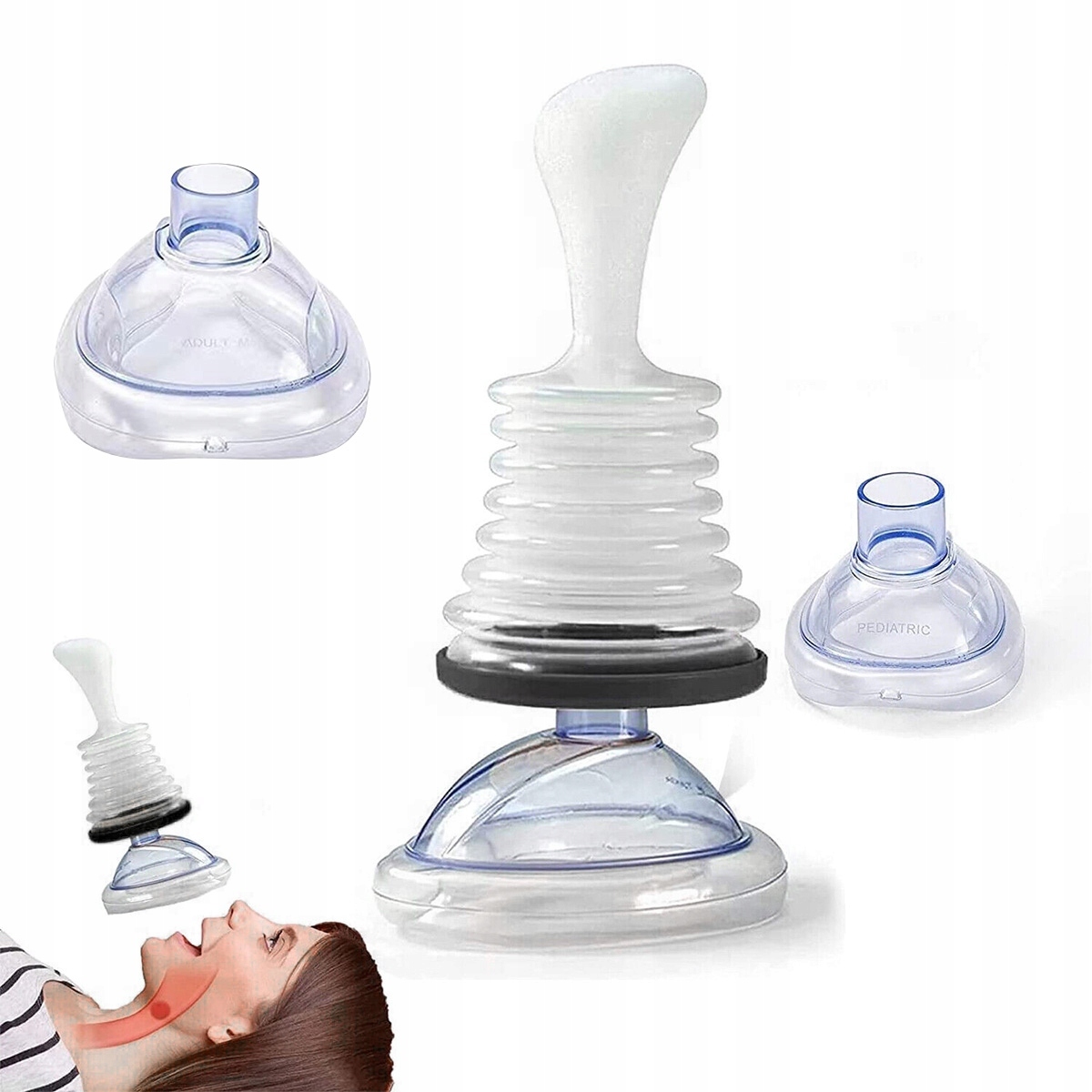 🛠️Наденьте маску на рот и нос пациента. Нажмите на ручку. Сильно потяните ручку вверх. Это вызовет всасывание и препятствие будет вытащено из горла пациента. Продолжительность всасывания минимальна.