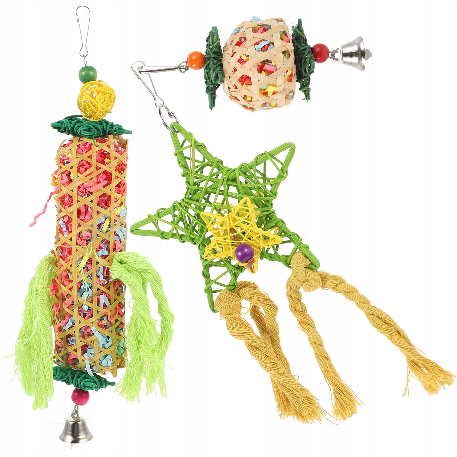 3шт. ПРОЧНЫЕ ДЕРЕВЯННЫЕ ИГРУШКИ-ЖЕВАНИЯ С КРЮЧКОМ ДЛЯ КЛЕТОК ДЛЯ ПТИЦ