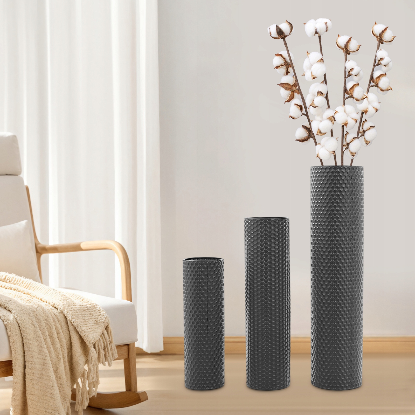 Этот изысканный набор вазы с тремя частями представляет необычайную художественную привлекательность благодаря минималистскому, но современному стилю дизайна. Три разных размера позволяют ему плавно адаптироваться к различным требованиям пространственной системы. Черная текстура Honeycomb не только дает ему уникальный, модный персонаж, но и добавляет визуальную глубину и текстуру, улучшая вашу живую среду с помощью неоспоримого художественного акцента, что делает его идеальным выбором для повышения дизайна дома.