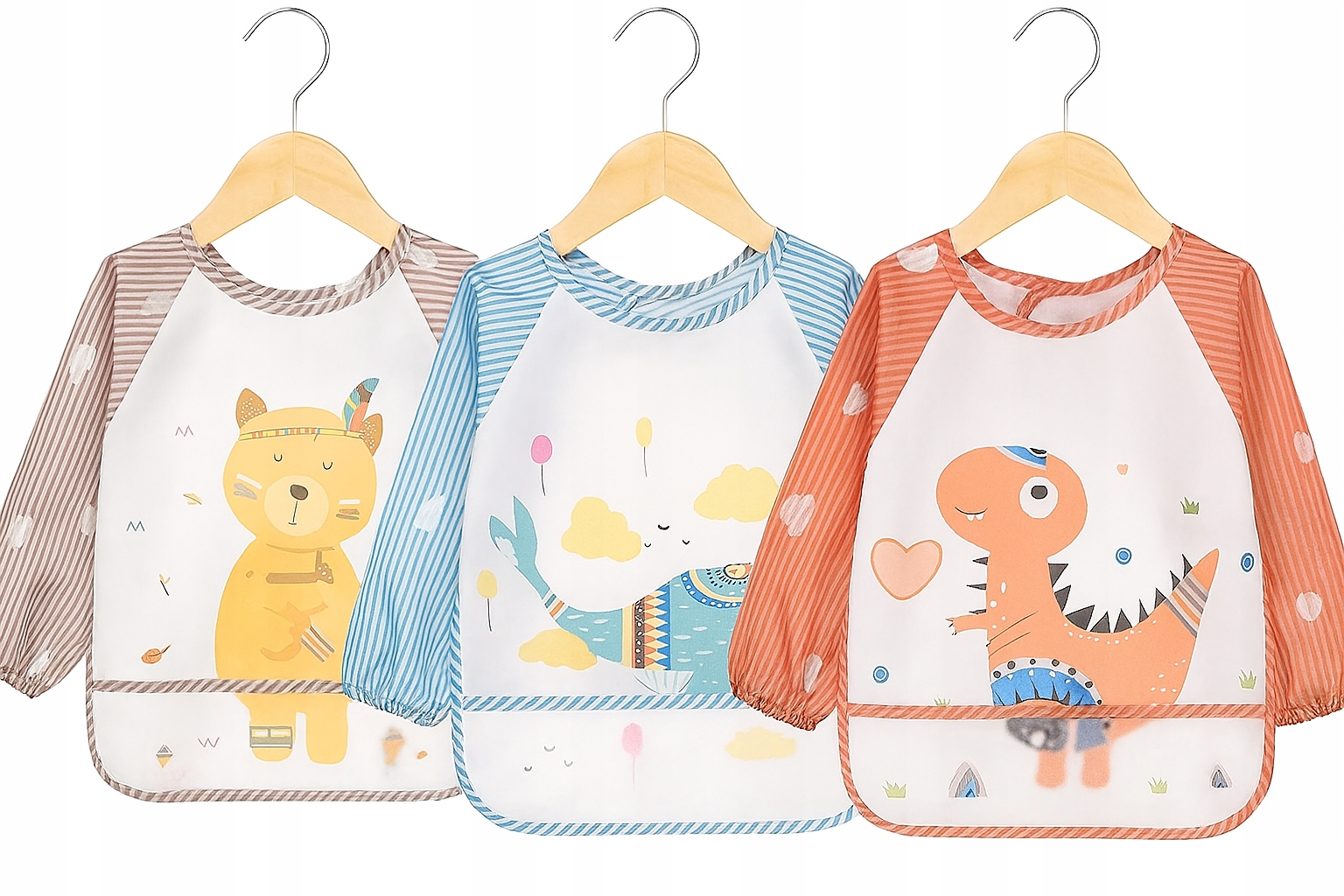 3шт. Комплект: Детские нагрудники с рукавами, Непромокаемые нагрудники с длинными рукавами, Непромокаемый нагрудник унисекс для детей от 6 месяцев до 3 лет