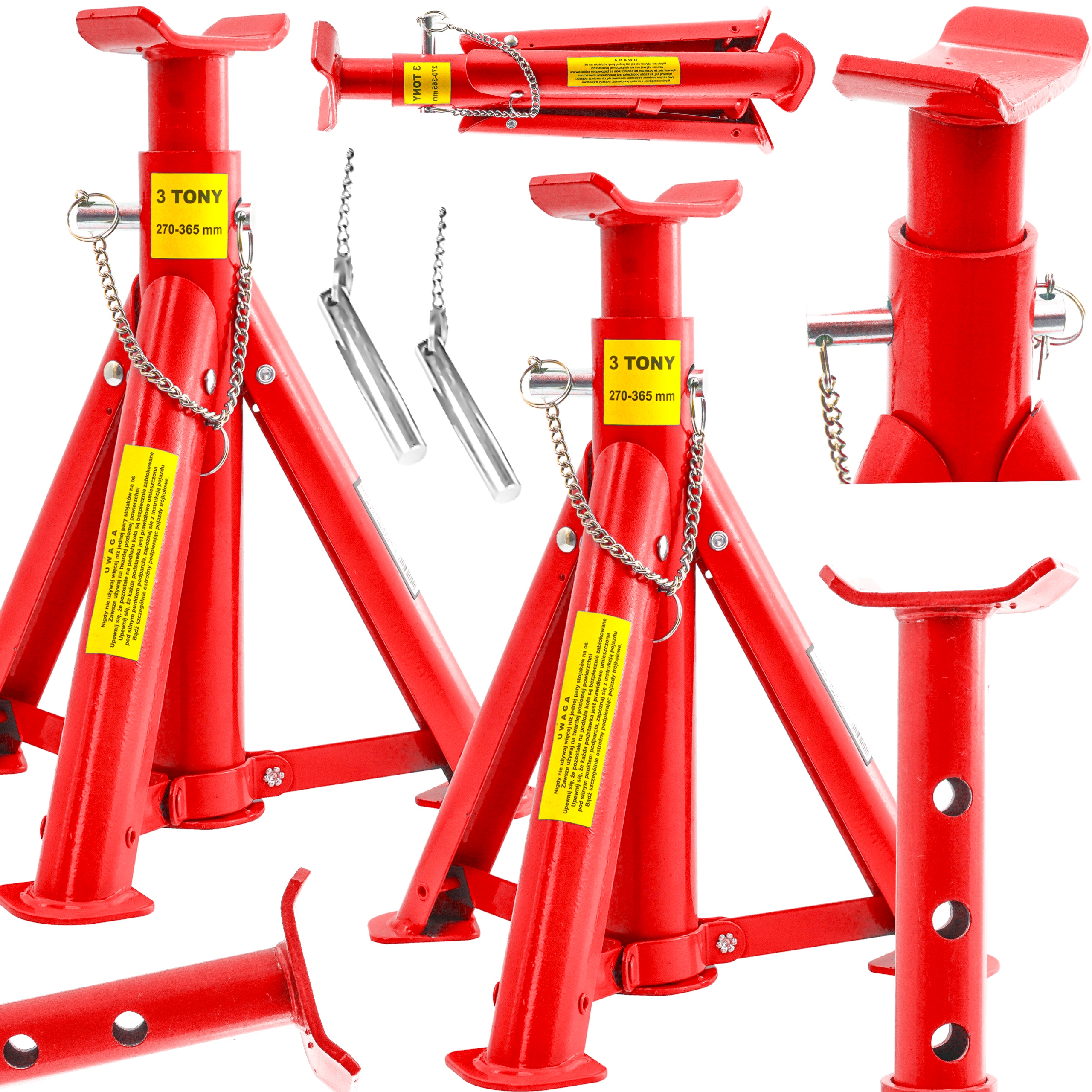Автомобильные подставки имеют три складные ножки и трехступенчатую регулировку высоты. Английская булавка постоянно прикреплена к основанию. Идеально подходит для снятия нагрузки с домкрата. Являются частью основного оборудования каждой мастерской.