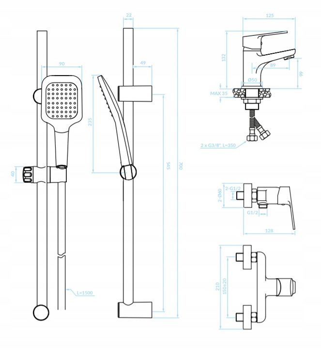 КОМБЕКТ ДЛЯ ВАННОЙ КОМНАТЫ BORGO - ДУШ