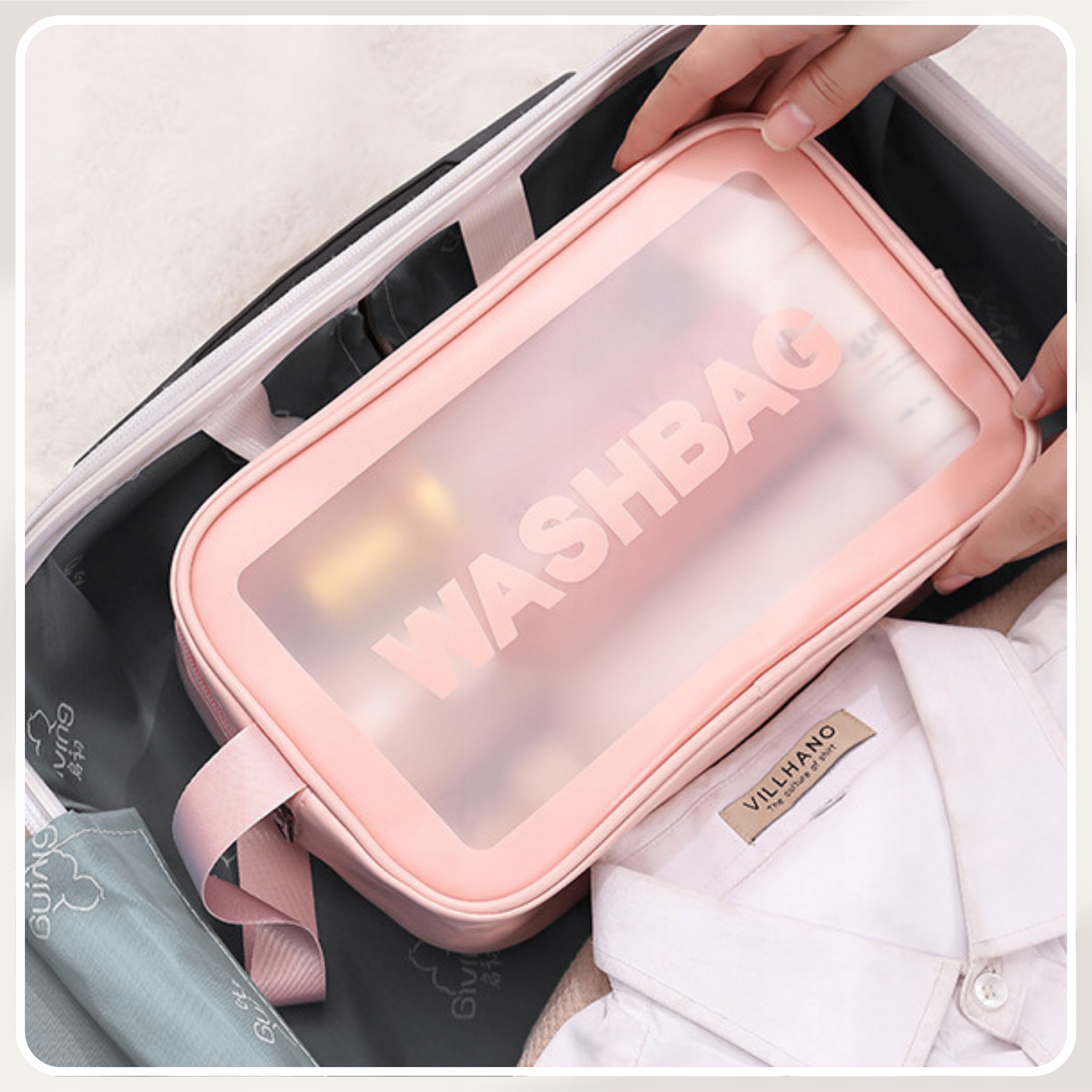 Набор 3-в-1 состоит из трех косметичек - большой, средней и маленькой. Изготовлен из прозрачного ПВХ-пластика, водонепроницаемого и очень легко чистящегося. Они идеально подходят для путешествия или отпуска, а также для посещения бассейна или тренажерного зала. В них можно разместить не только косметику и гигиенические принадлежности, но и небольшое полотенце, кошелек и телефон. Прозрачный материал облегчит быстрое нахождение нужного предмета и ускорит регистрацию в аэропорту. Самую большую косметичку можно использовать как сумочку благодаря длинной черной ручке.